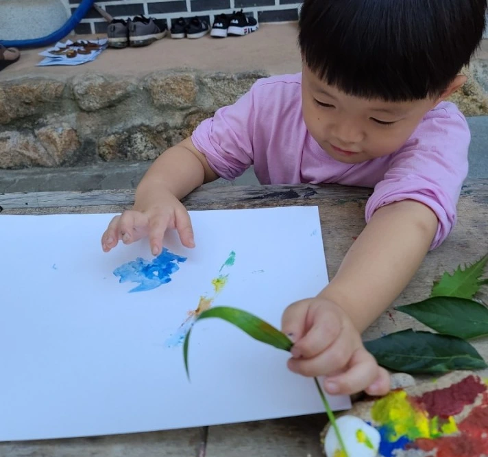 내가 본격적으로 자연물과 놀이해 주게 된 건 코로나의 영향이 컸다. 사람들과도 어울리기 어렵고 특별한 장소에 갈 수도 없던 우리는 시댁에 자주 왔었다. 또, 사람들을 피해 주로 자연으로 많이 다니다 보니 자연이 정말 좋은 놀이터이고 자연물이 최고의 놀잇감이라는 것을 깨닫게 되었다. 그래서 어느 순간부터 아이들이 자연물로 잘 놀이할 수 있도록 아이디어를 생각해 가거나 목공풀, 물감, 네임펜등을 챙겨간다.