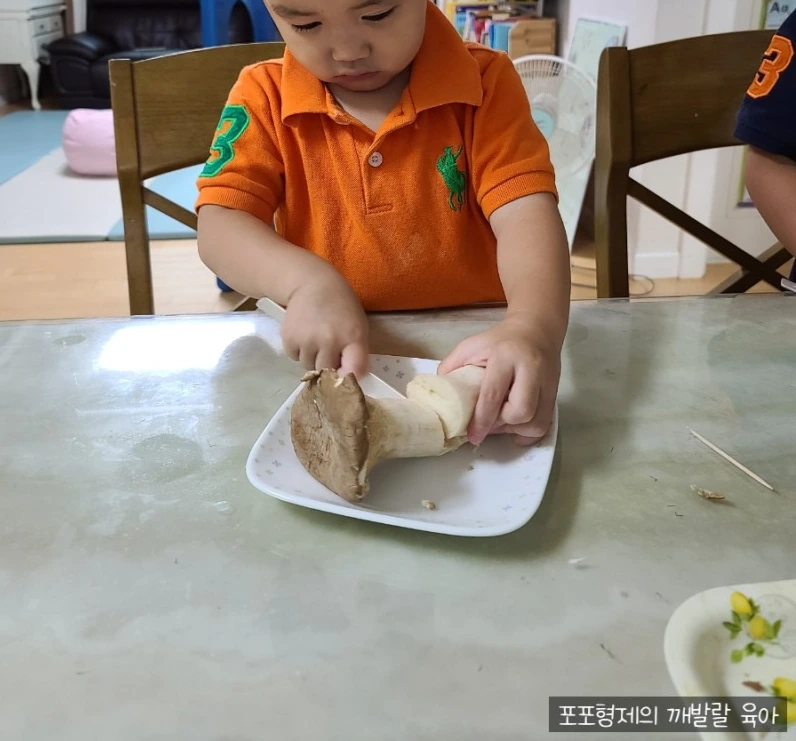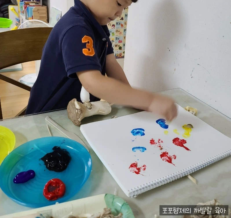 만들기에도 등장하는 버섯~ 엄마인 나와 먼저 키운 첫째는 하나에 관심을 오래 가지지 못하기 때문에 늘 둘째의 모습이 신기하기만 하다. 어떤 활동을 하던지 아이가 좋아하는 걸 해 보자고 하면 아이는 신이 나서 참여한다. 함께 시간을 보낼 때 내 아이를 관찰해 보자. 그리고 그 흥미를 유지시키고 응원해 주자.