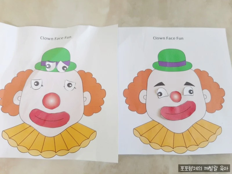 역시 키즈클럽 자료를 활용했는데 클라운 얼굴을 꾸며보았다. 프린트할 때 나는 컬러와 흑백 모두 하는 편이다. 아이가 어떤 걸 원하는지 모르기 때문에.. 그리고 안 한 것은 이면지로 활용하면 된다.