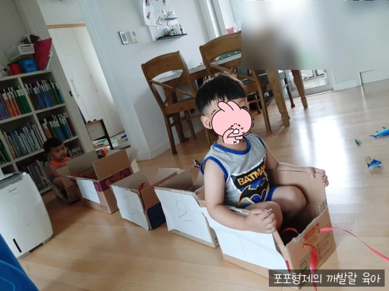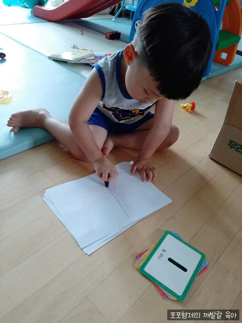 숫자를 익히기 위해 숫자기차도 만들었었다. 숫자카드를 보고 직접 숫자를 써 보게 하여 상자에 붙여주었다. 장난감도 기차에 태워보고 직접 타 보기도 했다. 재미있었는지 다음에 또 숫자기차 만들자고 했었다. 이렇게 학습지나 문제집을 이용한 숫자 익히기보다 놀면서 엄마와 익히면 아이는 즐겁게 배울 수 있다.