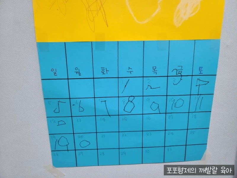 언제는 직접 달력을 만들어 보며 숫자를 써 보게도 했다.