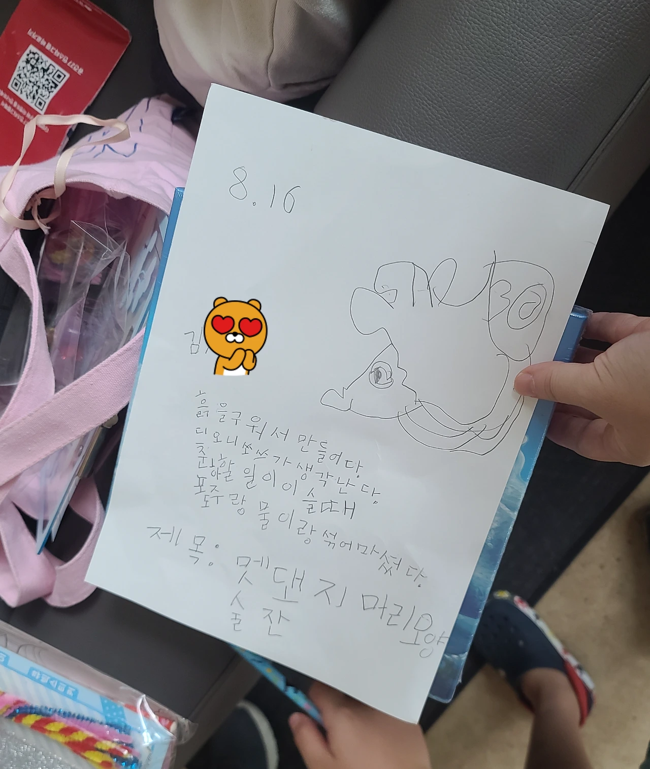 상담 때도, 방학 전 하이톡에서도 선생님께 그림을 천천히 그리고 색깔을 꼼꼼히 칠하면 좋겠다는 말씀을 들었었다. 포켓몬을 좋아하여 그림을 요즘 많이 그리는 영향도 있겠지만 어렸을 때 형태가 없는 그림에서 많이 발전한 모습이 보인다. 그리고 색도 제법 칸 안에 칠하려고 노력하고 여러 색을 이용한다. 이것 또한 걱정과 달리 때가 되면 하는 것을 한 번 더 느끼게 되었다. 일기를 쓸 때도 선생님께서 그림에 색칠을 하라고 하셨다며 꼭 색칠하던 아이였다. 지금의 모습을 보면 내가 왜 그렇게 걱정했나 싶을 정도로 짧은 시간 안에 많이 발전한 모습이다. 방학 때는 학기 중보다는 여유가 있으니 종이접기도 하고 오리기도 하고 알아서 하는 모습이 보인다. 아무래도 저학년까지는 선생님을 좋아해서 영향을 많이 받으니 그 시간을 잘 활용하면 좋은 것 같다.
