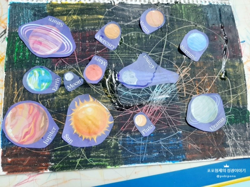 스크래치 활동을 하여 우주를 표현해 주었다. 그리고 행성 사진을 붙여주며 나만의 우주를 꾸며보았다.