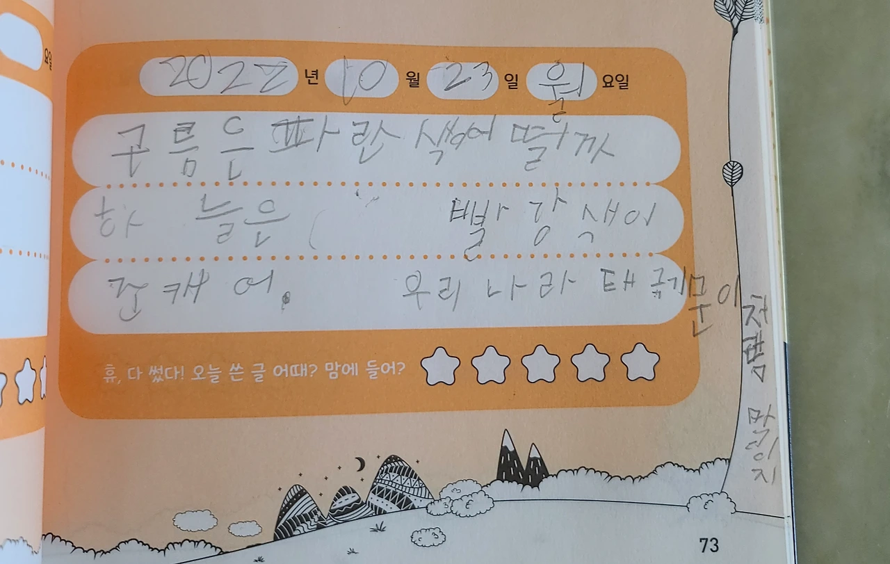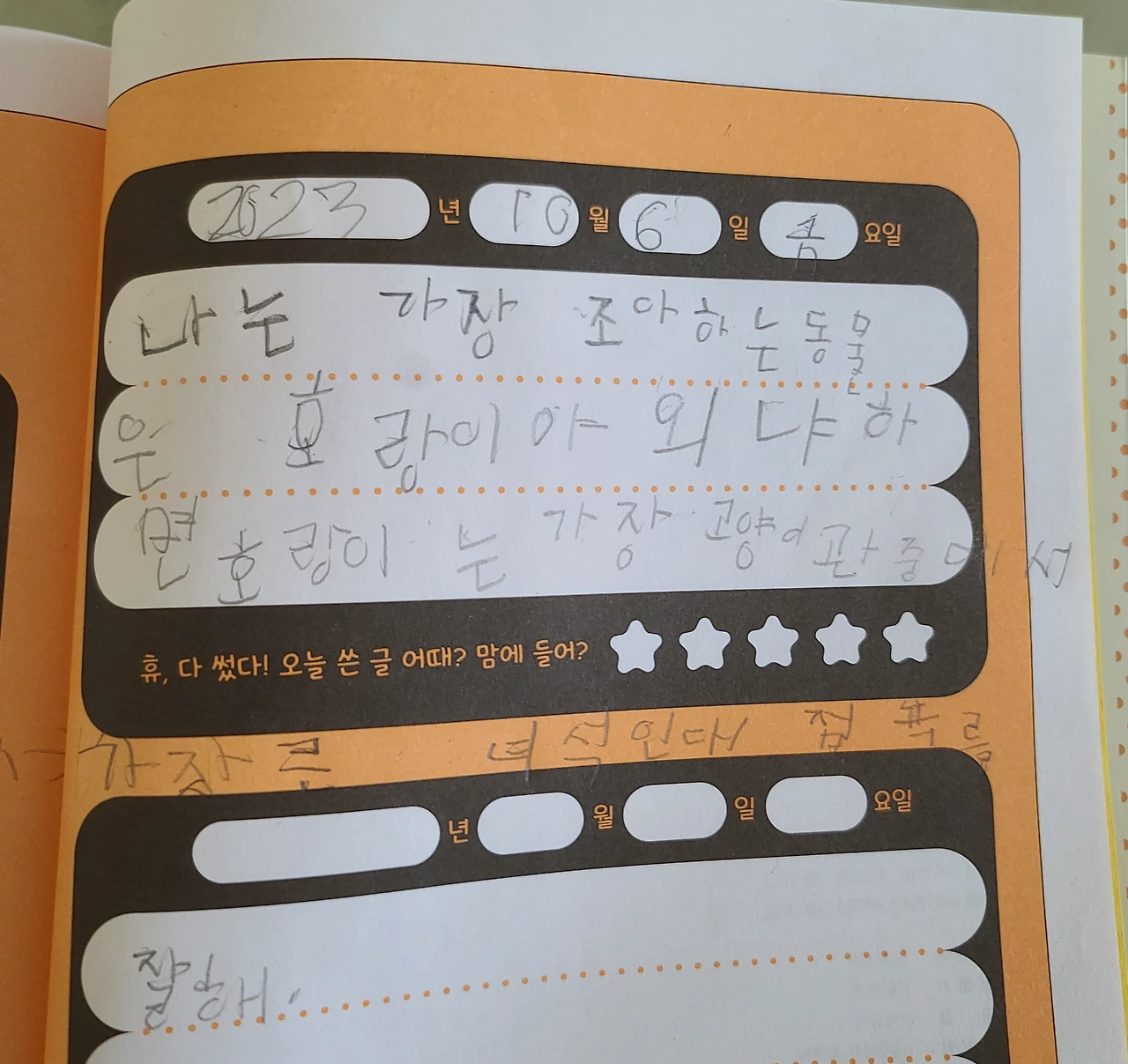단어쓰기만 해보고 입학했지만 이제 자기 생각도 잘 쓰는 첫째