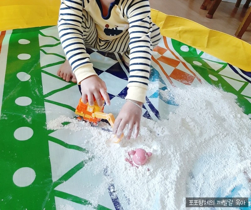 일단 큰 트레이나 김장매트에 오감놀이 재료만 주면 끝이니 사실 엄마도 편한 점도 있다.
