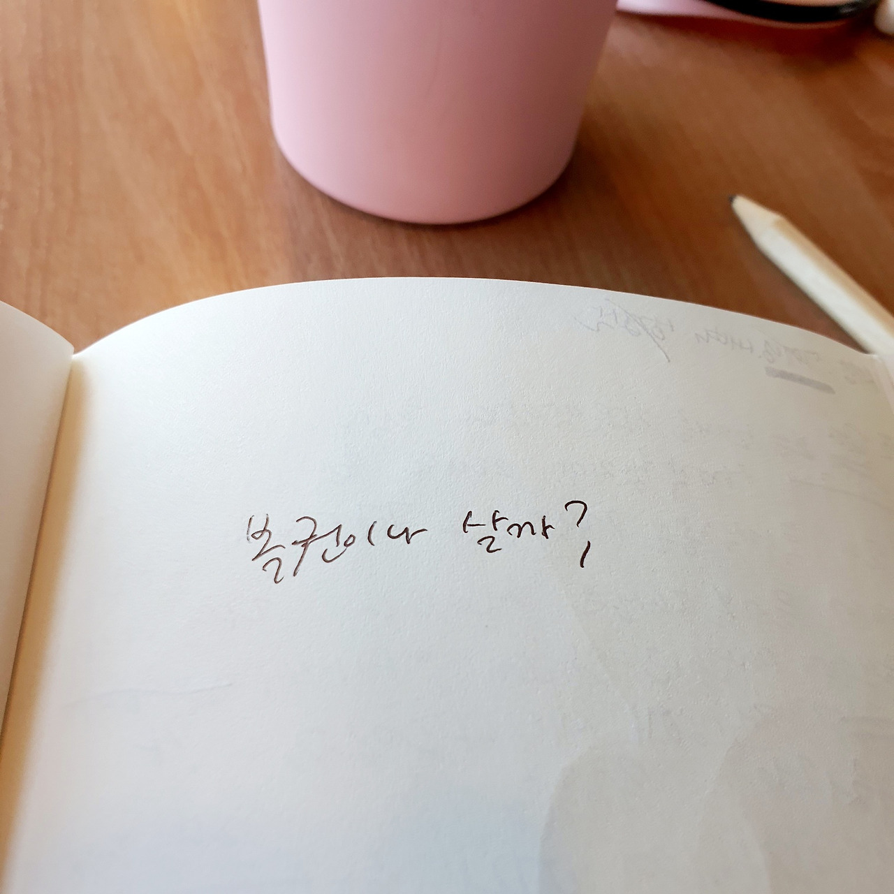 제출 마감인 오후 2시까지 여유로울 것 같았지만 어느덧 11시가 넘어가고 있었다. 브레인스토밍도 해 놨고, 쓰면 되지 뭐. 연예인에게 최고의 다이어트는 입금이고 글 쓰는 사람에게는 마감시간이니. 마감 시간에 닥쳐 단단 글방에 글을 써서 올렸던 경험도 있으니 다행이다 싶었다. 그렇게 커피 한잔을 홀짝이고 인증 사진을 찍은 후 '나 대학로 왔다'라고 스레드에 싱거운 글도 남긴 후 글을 쓰기 시작하다가…… 어? 어?! 어!!!!!! 원래는 1시까지 글쓰기를 마치고 원고지에 옮겨 적어야지, 싶었다. 그런데 초안 쓰기가 1시를 넘어 1시 5분, 10분, 15분을 지나고 있었다. 나는 급격하게 긴장했다. 다리가 달달 떨렸다. 서둘러 글을 마감하고 원고지에 글을 옮겨 적는데 펜을 쥔 손동작이 영 어색했다. 글을 옮겨 적는데 생각보다 너무 많은 시간이 걸렸다. 원고지는 또 웬 말인지. 쉼표를 찍은 후에 한 칸을 떼는 건지, 새로운 페이지의 맨 첫 칸은 무조건 한 칸을 떼는 건지 등등, 아리송했다. 검색해보고 싶었지만 시간이 없었다. 시간의 촉박함을 인지한 순간 나는 손이 얼어붙었고 글씨체는 엉망이었다. 그러니까, 거의 처음부터 그랬다.
