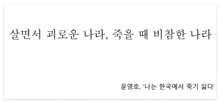 외국은, 선진국에서는 의사에게 무조건 내 가족을 맡기지 않아요. 이렇게 해 달라, 저렇게 해달라, 정부에게 요구합니다. 그런 말을 해 줄 수 있는 국회의원을 뽑습니다. 우리나라는 호스피스 병원이 턱없이 부족하지요. 정부의 지원이 열악하다 보니 열악한 시설도 많고요. 호스피스 병동은 더 이상 치료가 필요 없는 환자들이 쉬어가는 곳이에요. 그러니 병원 입장에서는 '쉬어가는 곳'을 두는 것을 좋아할까요? 서울대 병원은 그나마 있던 호스피스 병동 10개 조차 없애버렸습니다. 정부는 원래 2024년까지 호스피스 병동을 늘리겠다고 발표해 놓고 오히려 줄였습니다. 돈을 써야 될 곳에 안 쓰는 나라... 이것은 시민의 손에 달려있습니다. 죽는 문제는 시민 사회에서 가장 기본적인 일이에요. 우리가 관심을 가져야 사회가 변합니다.
