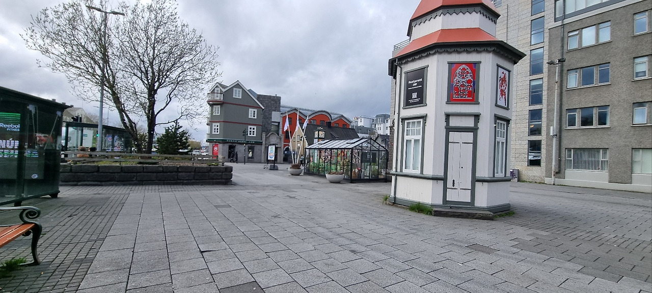 수도 레이캬비크의 정 중심에 서서. 그녀와 나.