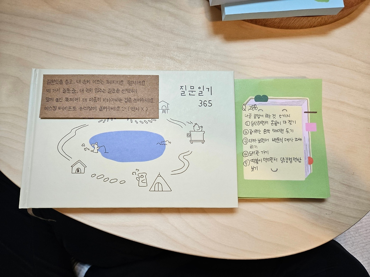 2층으로 올라가니 예쁜 서재가 있었고, 질문일기라는 책이 있었다.