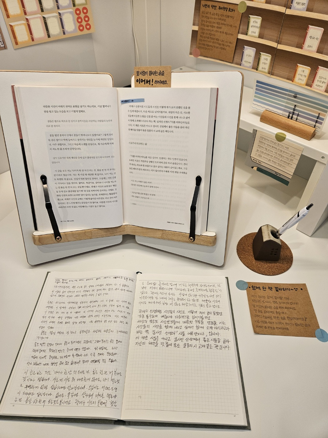 필사의 공간이 있어서 누군가가 쓴 글 다음에 내 글을 이어 쓸 수 있다.