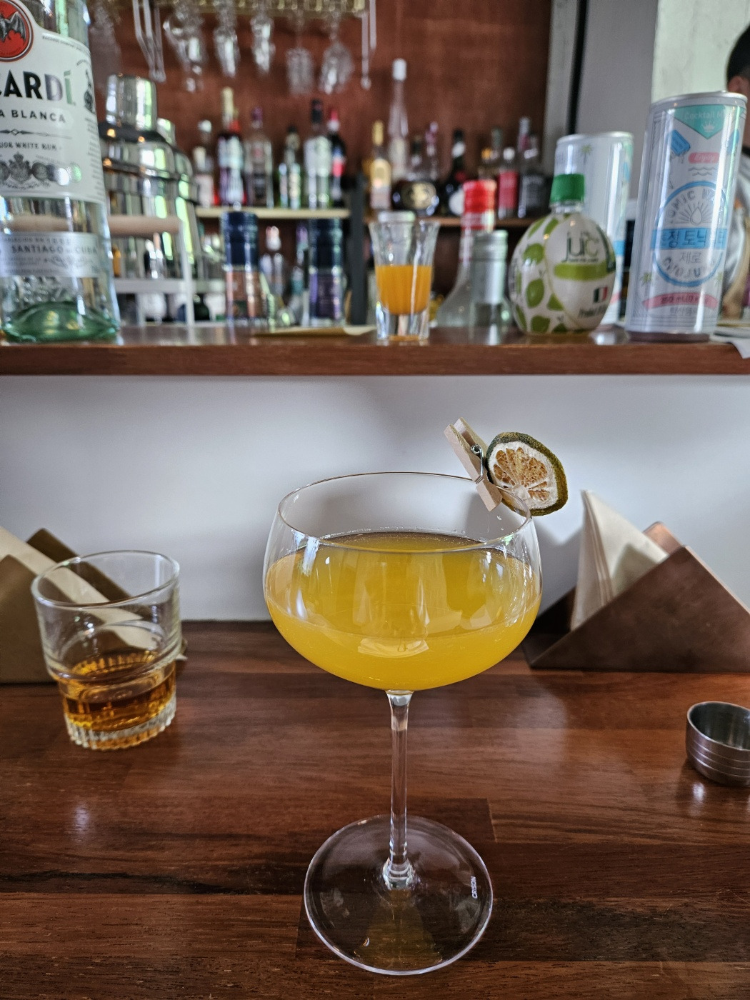 럼을 기주로 한 살굿빛 시트러스 향의 칵테일을 만들어보았다.