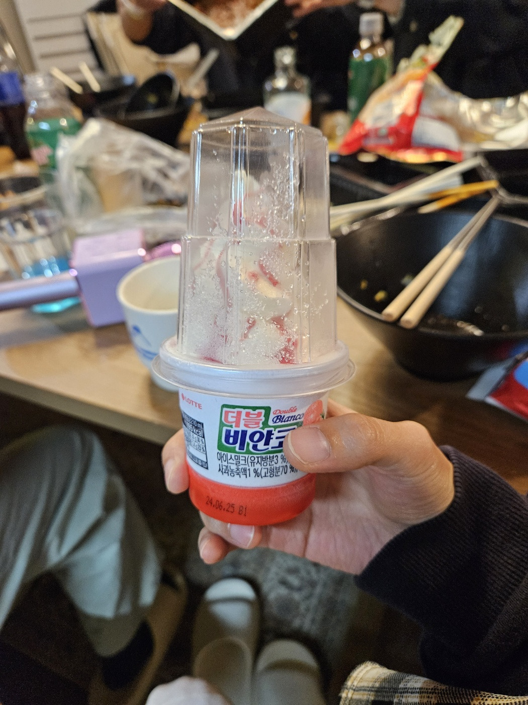 얼음 5알을 넣고 흔들어보니 쉽지가 않다.