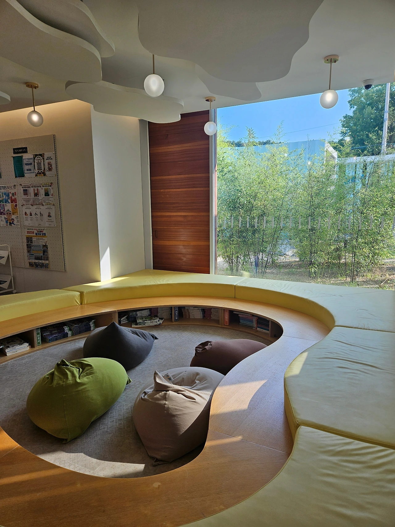 바로 옆에 카페가 있어 아이는 책을 보고 부모는 바로 옆에서 차를 마시며 휴식할 수 있는 공간이다.