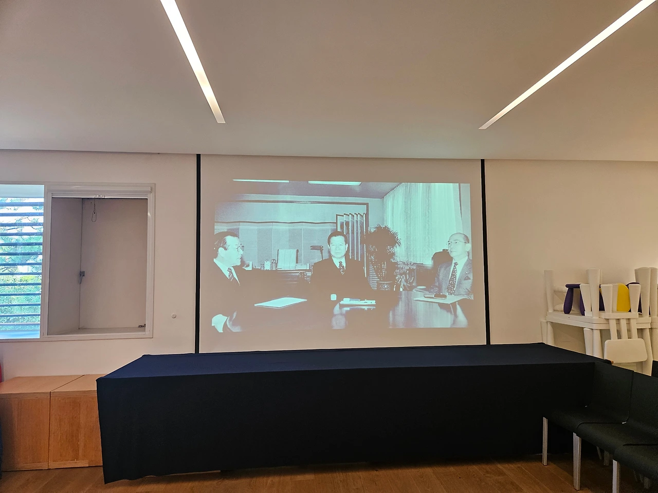 2층으로 올라가면 박태준의 생애가 담긴 영상이 재생되고 있다.