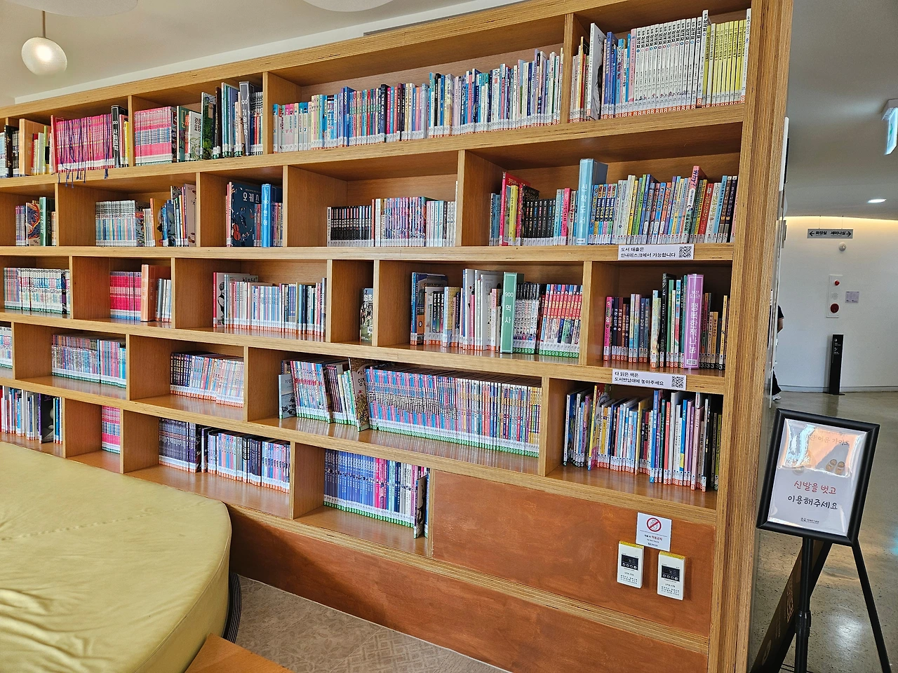 요즘에 볼만한 도서들로 준비되어 있다. 근래에 출판된 책들과 심지어 웹툰 만화와 소설까지 구비되어 있다.