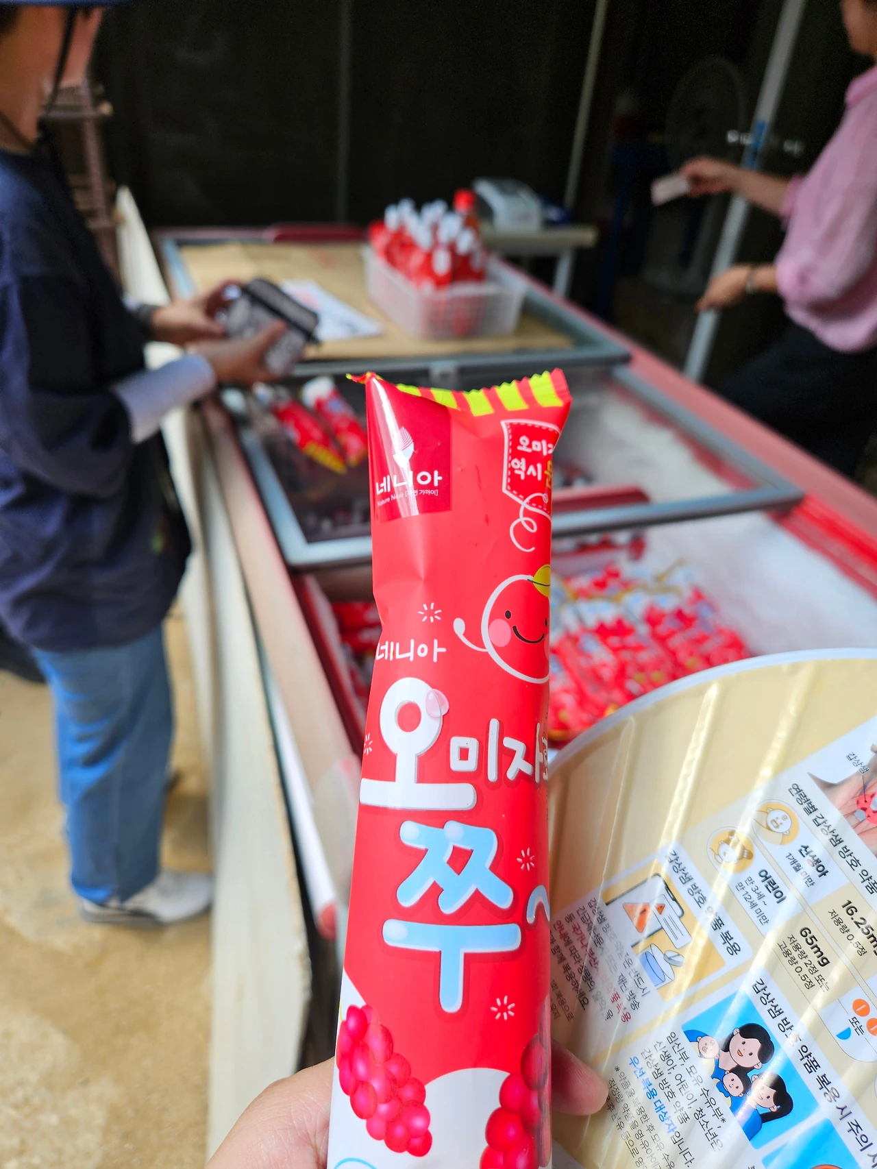 오미자테마터널 앞 매점에서 오미자가 들어간 쮸쮸바를 판매한다. 오미자 쮸.