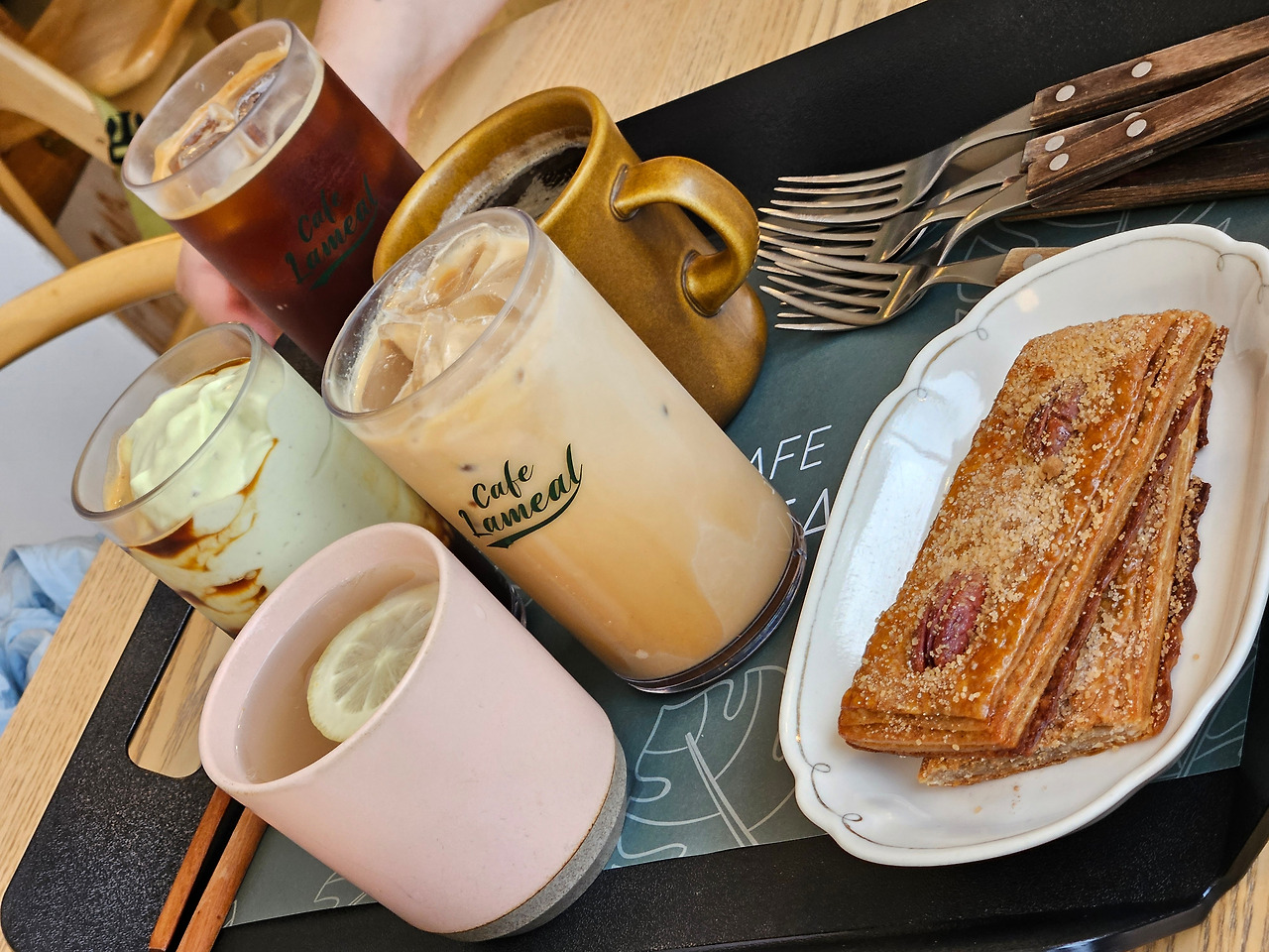 나나님이 시켜주신 '피칸 시나몬 페스트리' 맛이 별미다. 겹겹이 바삭한 페스트리 겹 사이에서 느껴지는 크림치즈가 별미다. 차와 함께하는 맛있는 빵은 먹는 이를 행복하게 만든다.