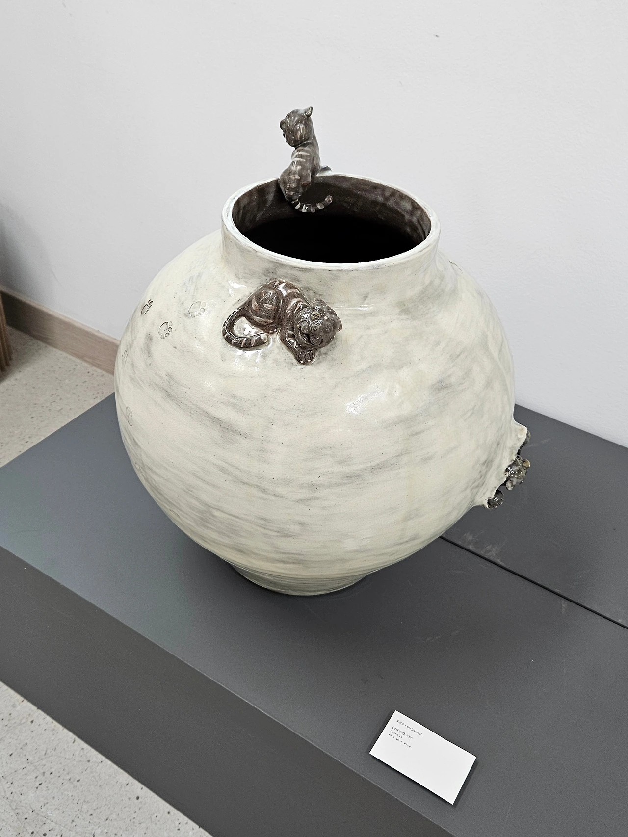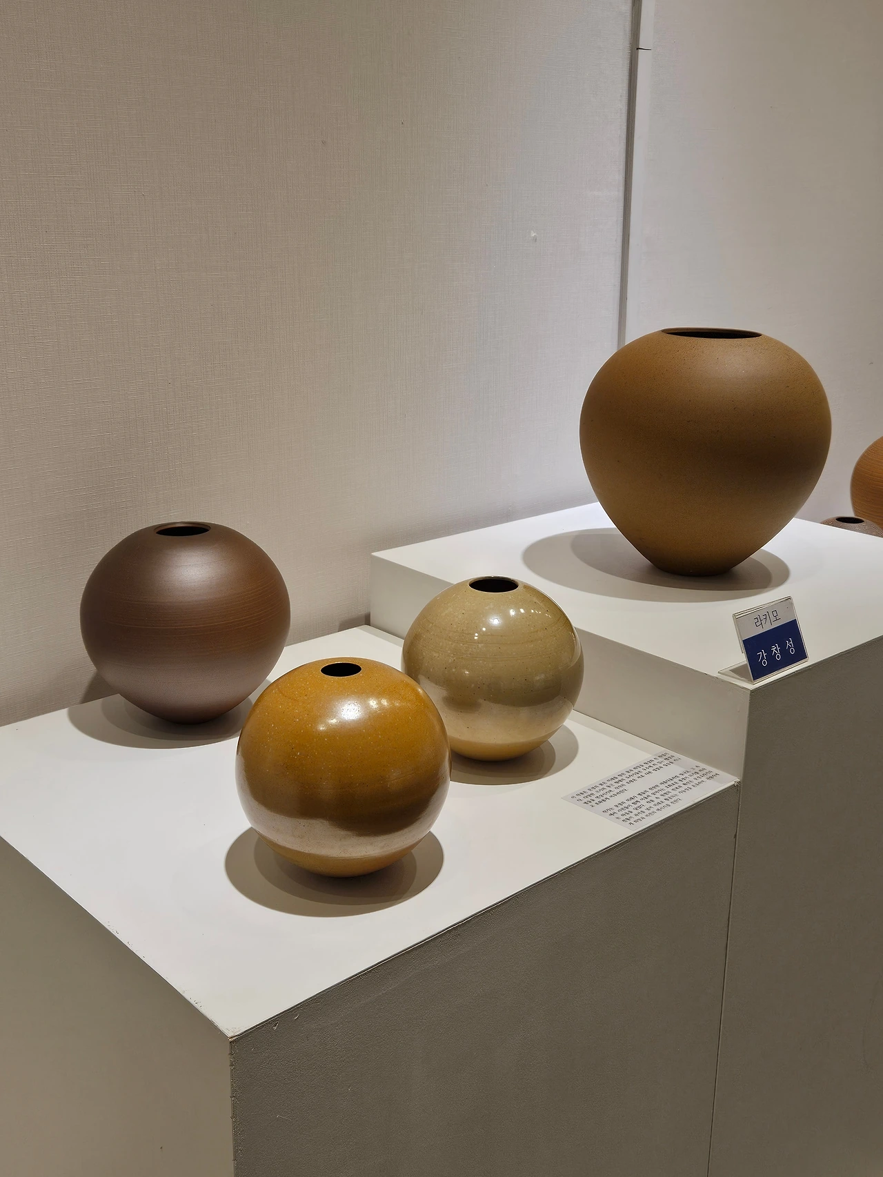 전시 안내하는 사람은 없었지만, 우리를 가이드해 주는 도미닉 님이 전시영상을 촬영하셨기 때문에 약 17분 간의 영상강의를 본 후 작품을 감상할 수 있었다. 특허받은 기술이 깃든 귀한 항아리들을 이렇게 쉽게 볼 수 있다니, 문경에 오니 매일이 기쁜 소식과 경사스러움으로 꽉 차고 있다. 진진님의 오라버니도 작가로 참여하셔서 광부의 고단한 삶을 희망으로 담은 항아리를 볼 수 있었다.