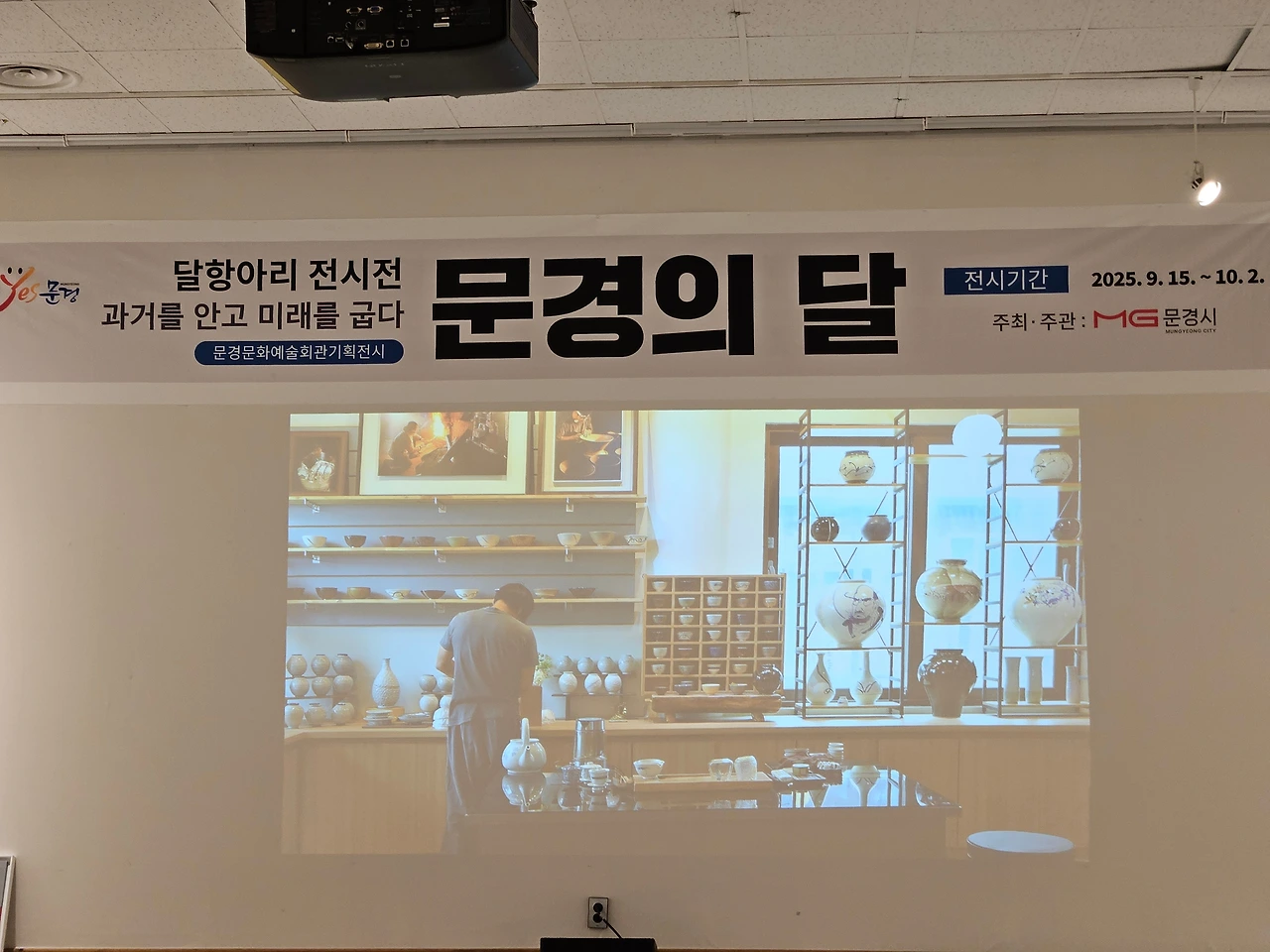 차를 타고 문경문화예술회관에서 진행되는 '문경은 달'. 달항아리를 주제로 한 예술가들의 전시를 보게 되었다.