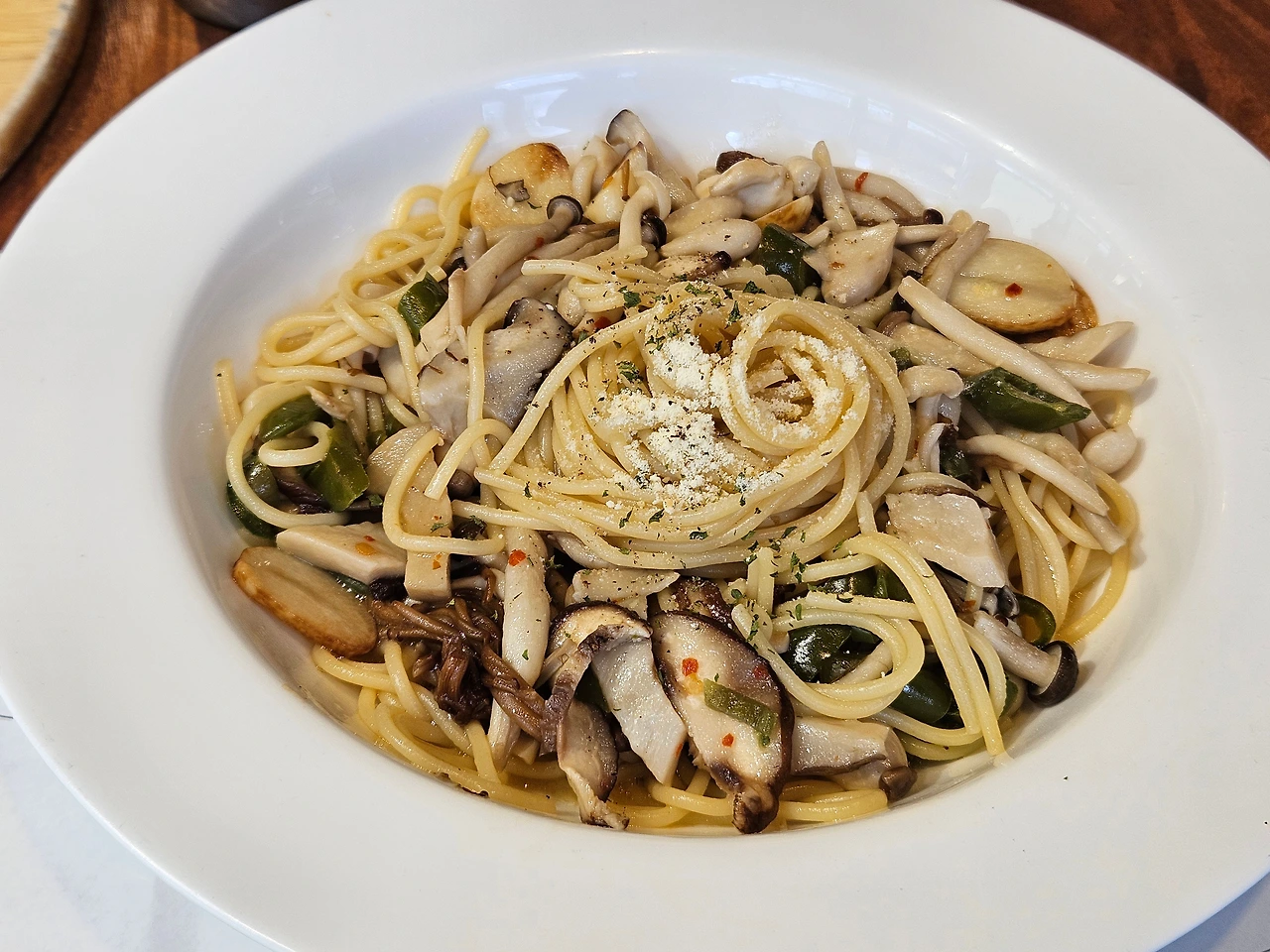 문경의 브런치, 파스타 맛집. 파밀리아에서 먹은 풍기 올리오 파스타 맛이 일품이다. 이 또한 각자의 취향에 맞게 다양한 메뉴를 시켜서 식탁이 풍성해졌다. 지인 찬스로 받은 마르게리타 피자도 맛있었다. 파밀리아는 건강한 재료를 아낌없이 접시에 담아내는 선물 같은 맛집이다.