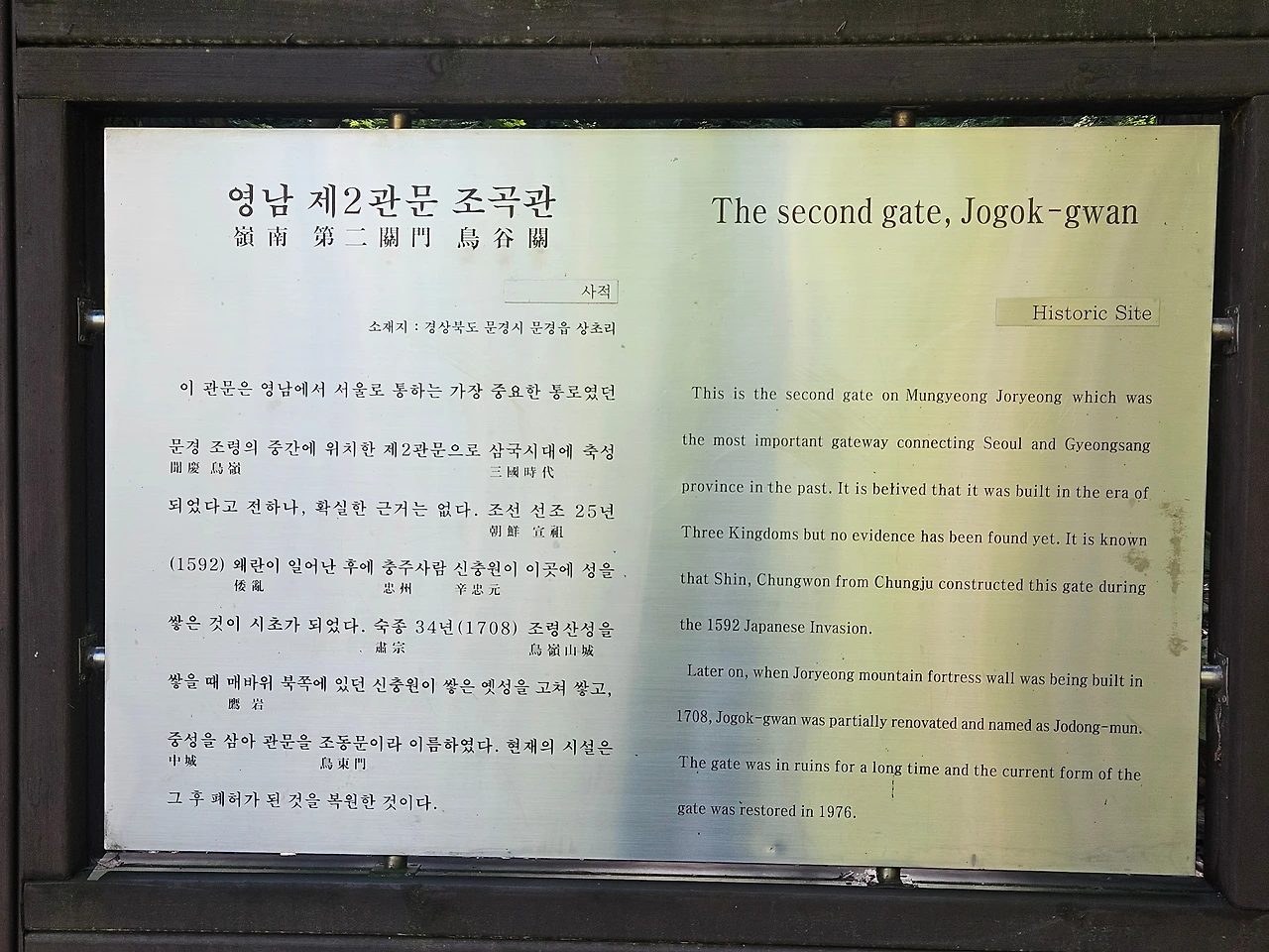 점점 걸어가는 속도가 늦춰진다. 평지는 완연한 오르막으로 변모했다. 꼴딱 꼴딱 넘어갈 것 같은 길을 힘겹게 걸어 드디어 그렇게 보고 싶었던 제3 관문, 조령관을 조우한다. 해발 650m.