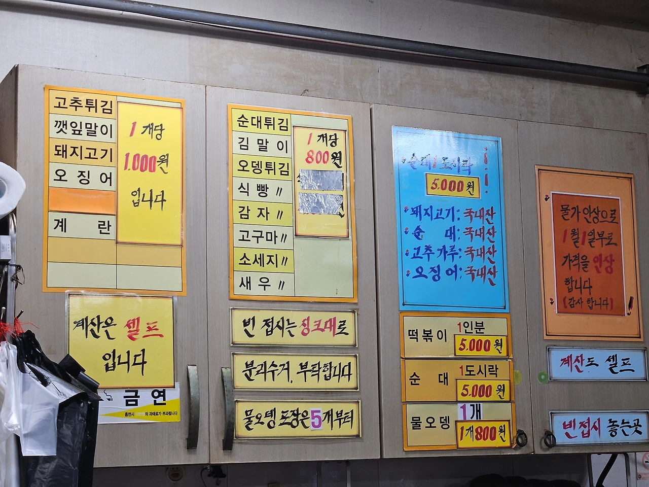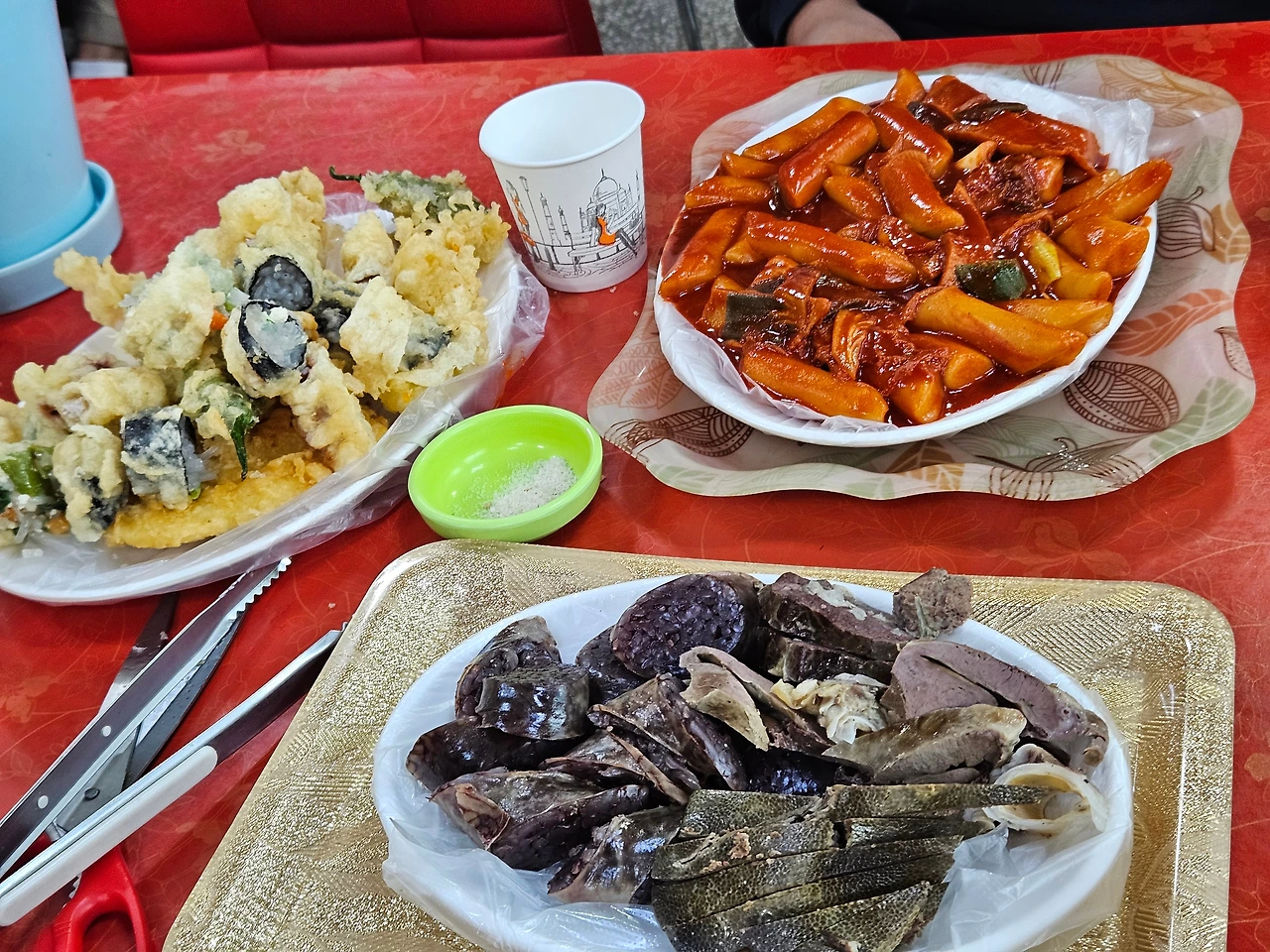 튀김을 마구 접시에 올려 담는 재미, 특히나 고기튀김이 맛있는 집이라고 한다. 현지인 추천 맛집은 언제나 행복감을 선사한다. 떡볶이 2인분과 순대 1인분. 식탁을 채우기에 더없이 충만한 메뉴들이다.