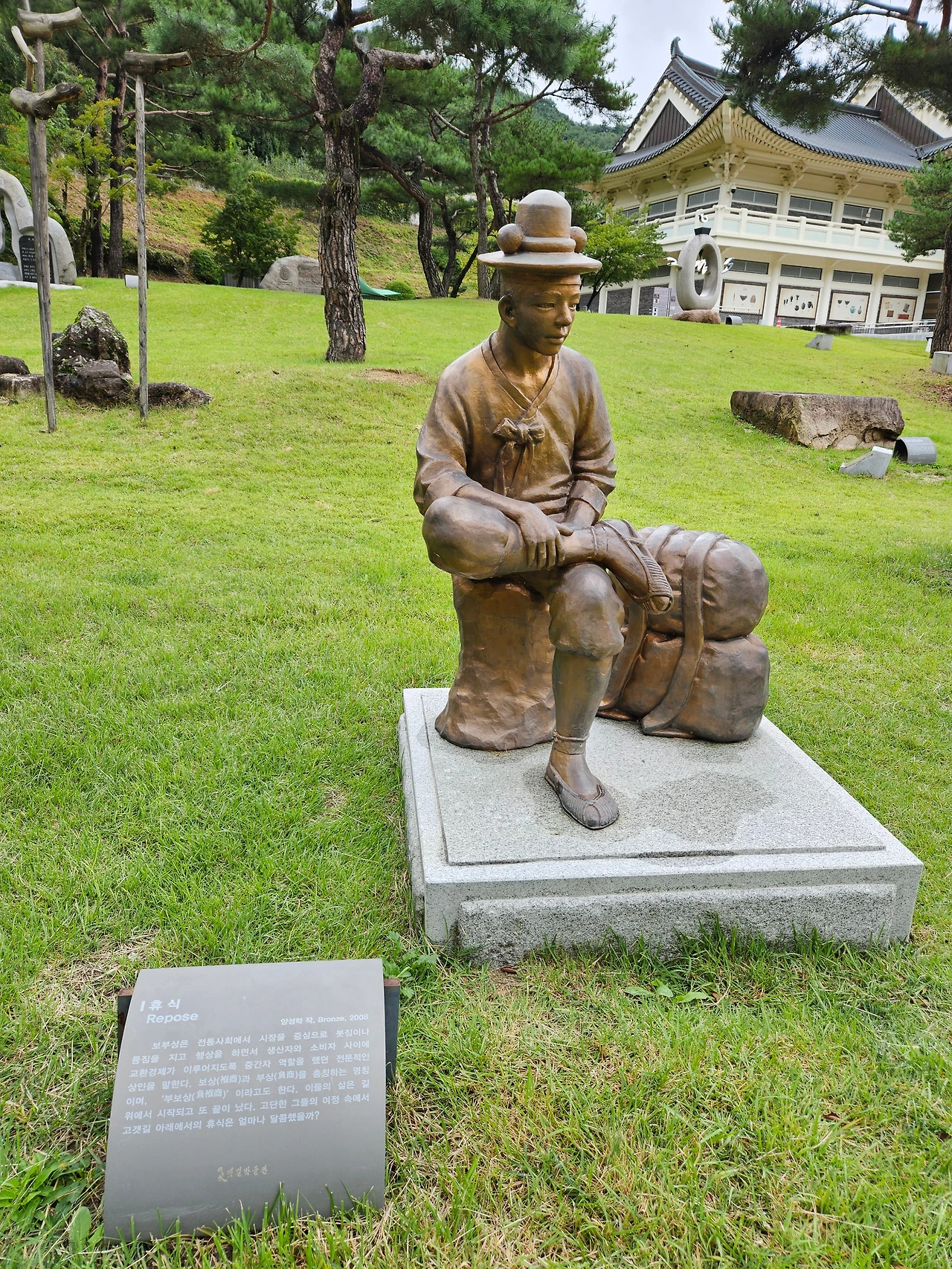 '휴식'. 열심히 움직인 자에게 정말 달콤한 순간이다. 한반도의 중심지로 많은 이들이 문경을 지나다녔을 테지만, 특히나 많이 오고 갔을 보부상을 생각나게 하는 작품이다. 요즘같이 상거래가 편리한 시대와는 다르게 예전에는 사람이 직접 이고 지고 나르며 필요한 것을 말하면 사다 주기도 하고, 가치에 맞게 물물교환 하기도 했다.