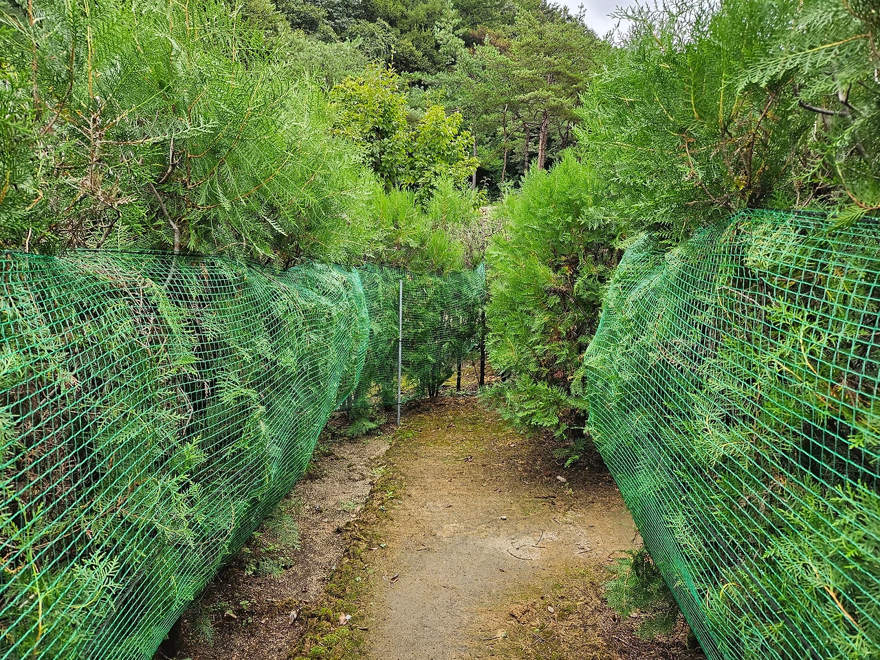 도자기 미로 공원의 나무들이 빽빽하지 않고 숭숭 비어있다. 잘 관리되지 않은 모습이다. 나무들이 어디 아픈가? 덕분에 나는 미로 찾기가 더 수월했다. 막다른 길이 나무 사이로 보였기 때문이다.