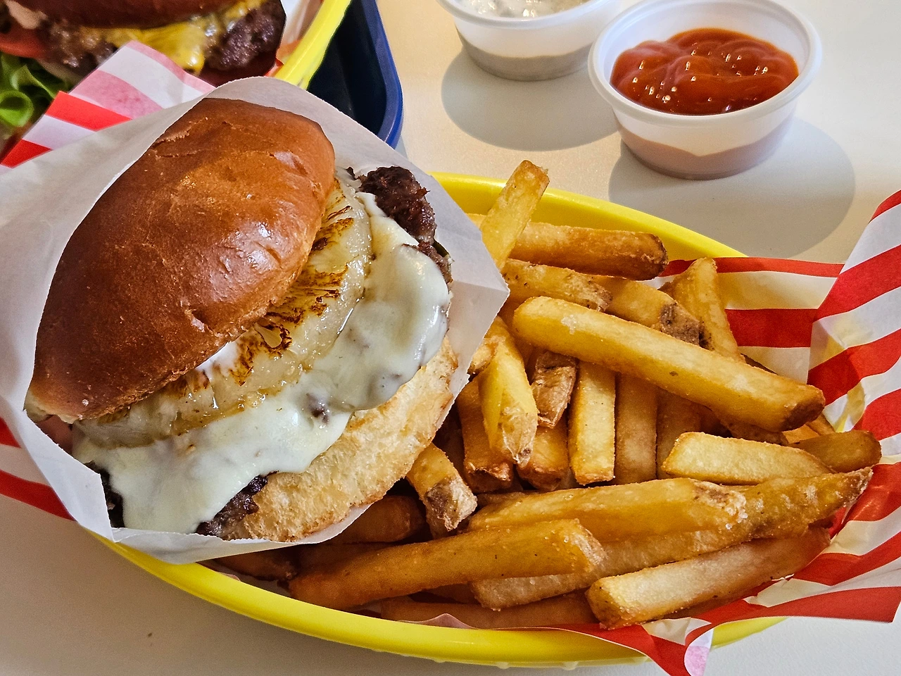 내 입맛에 가장 잘 맞았던 곳은 영신숲 바로 앞에 위치한 햄버거집 [올무]. 여기서 먹는 치즈버거(8,500원)의 맛이 일품이다. 감자튀김을 시키면 주는 느끼하고 달달한 소스가 킥이다. 또한 영신 숲은 프로방스를 생각나게 하는 여유로움이 풍기는 장소이니, 햄버거와 함께한다면 유럽의 어느 한적한 공원에서 먹는 듯한 기분이 든다.