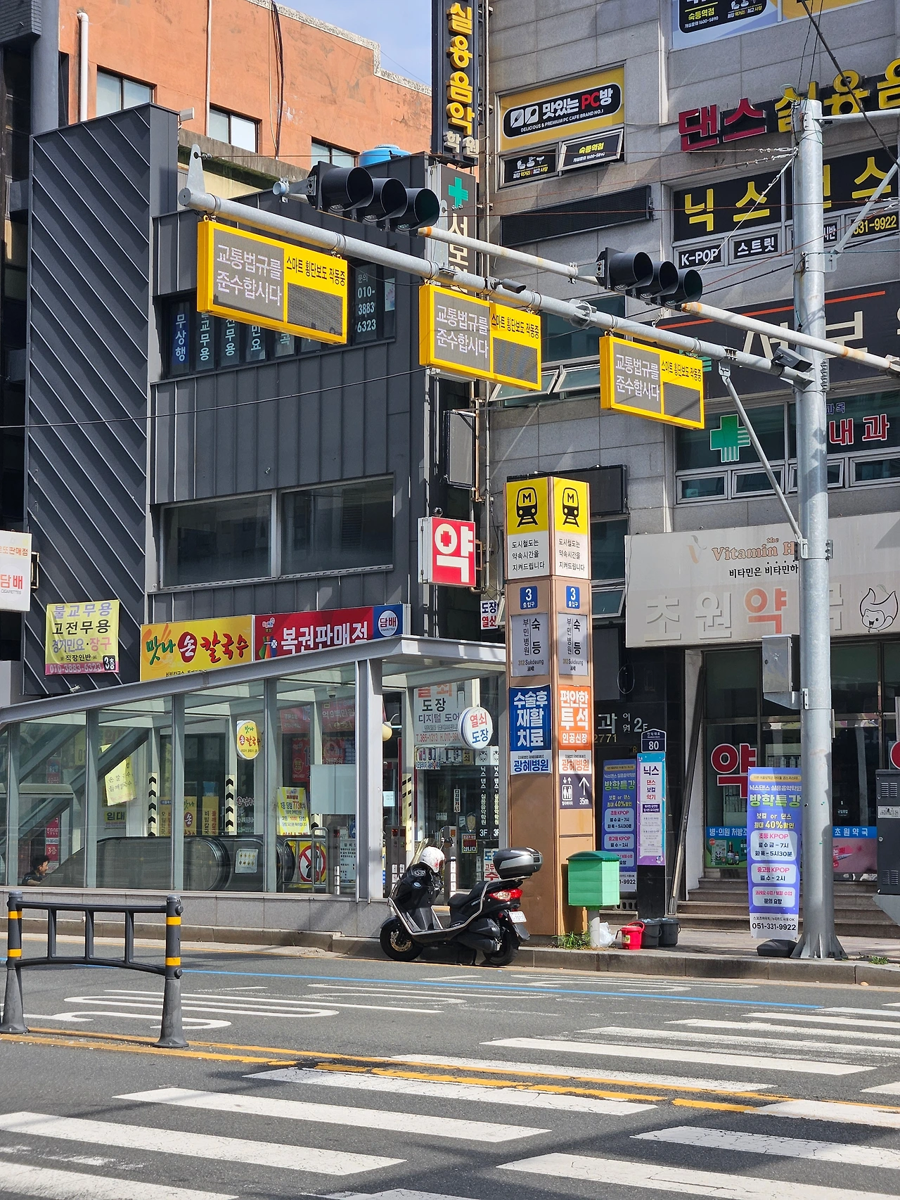 얼마나 위반하는 사람이 많길래, 이 앞에 자리 잡았을까. 혹은 시범적으로 놓여있는 스마트 횡단보도일까.