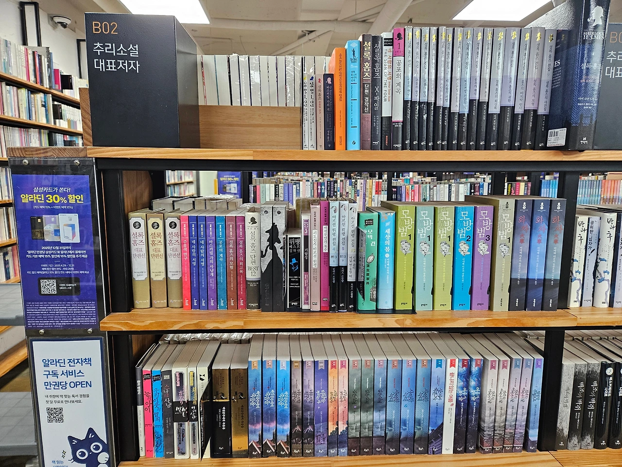 입구에 들어서자마자 들어오는 추리소설 코너는 언제나 베스트셀러다.