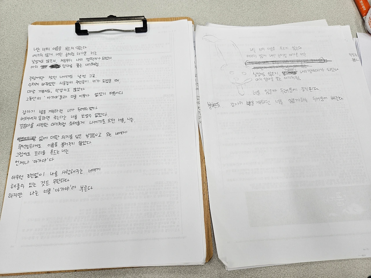 다행히 수업 1시간 전에 끄적였던 몇 줄의 시에 대한 평가는 냉철했고, 적극적인 수용으로 얼핏 보면 시처럼 보이는 글을 썼다.