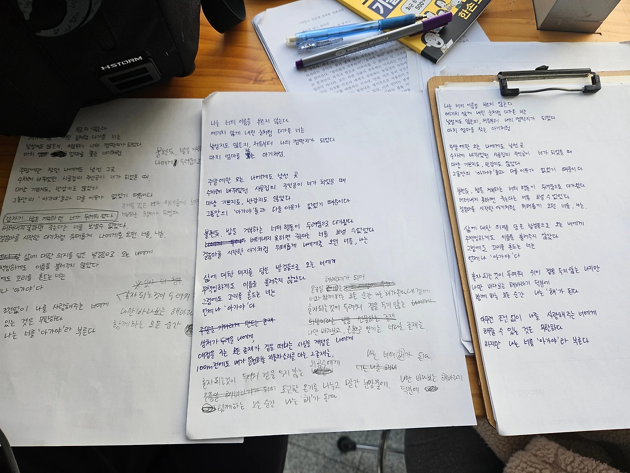 억지로 음률을 맞추는 느낌이지만, 이 거친 느낌 또한 시를 처음 쓰는 사람의 서투름이 아닌가.
