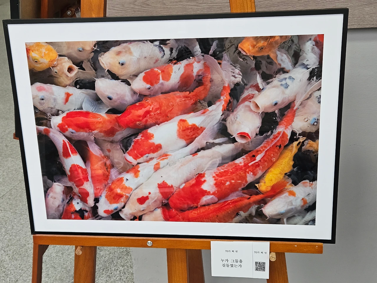 [누가 그들을 길들였는가]. 이 잉어들은 언제부터 이곳에 있었을까. 스스로도 살 수 있던 녀석들이 누군가로부터 길들여짐을 당하고 있다. 스스로가 길들여지는지 조차 모를 존재들. 만약 어떠한 기회로 방생이 된다 하더라도 이 잉어들을 자생할 수 있을까.