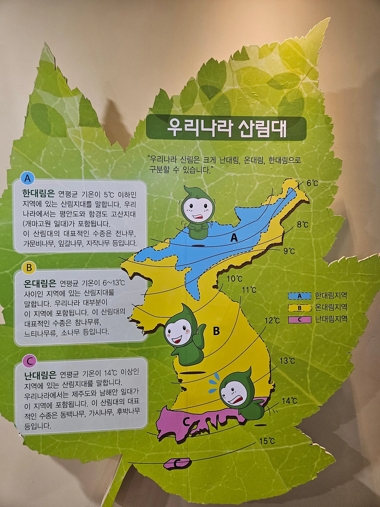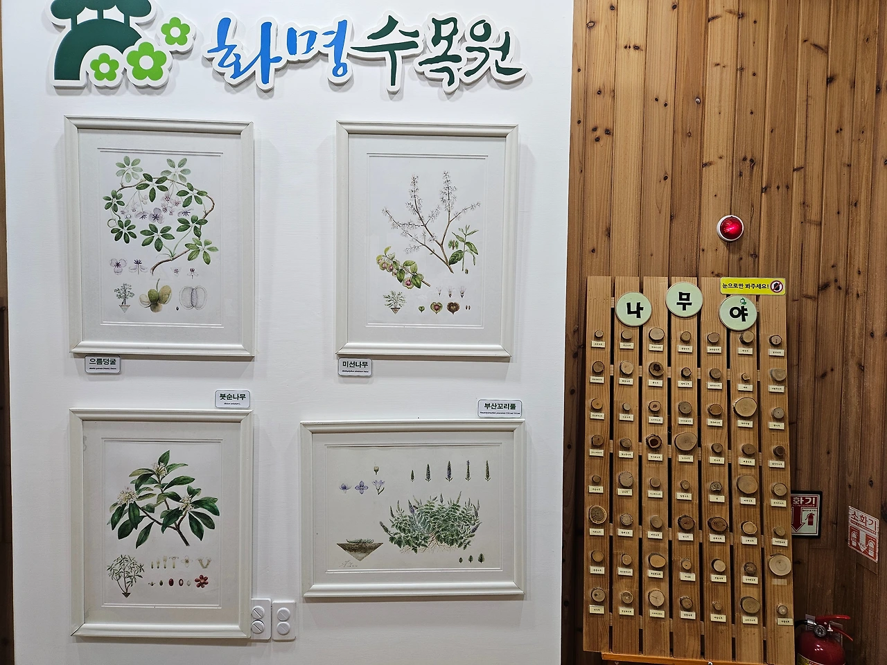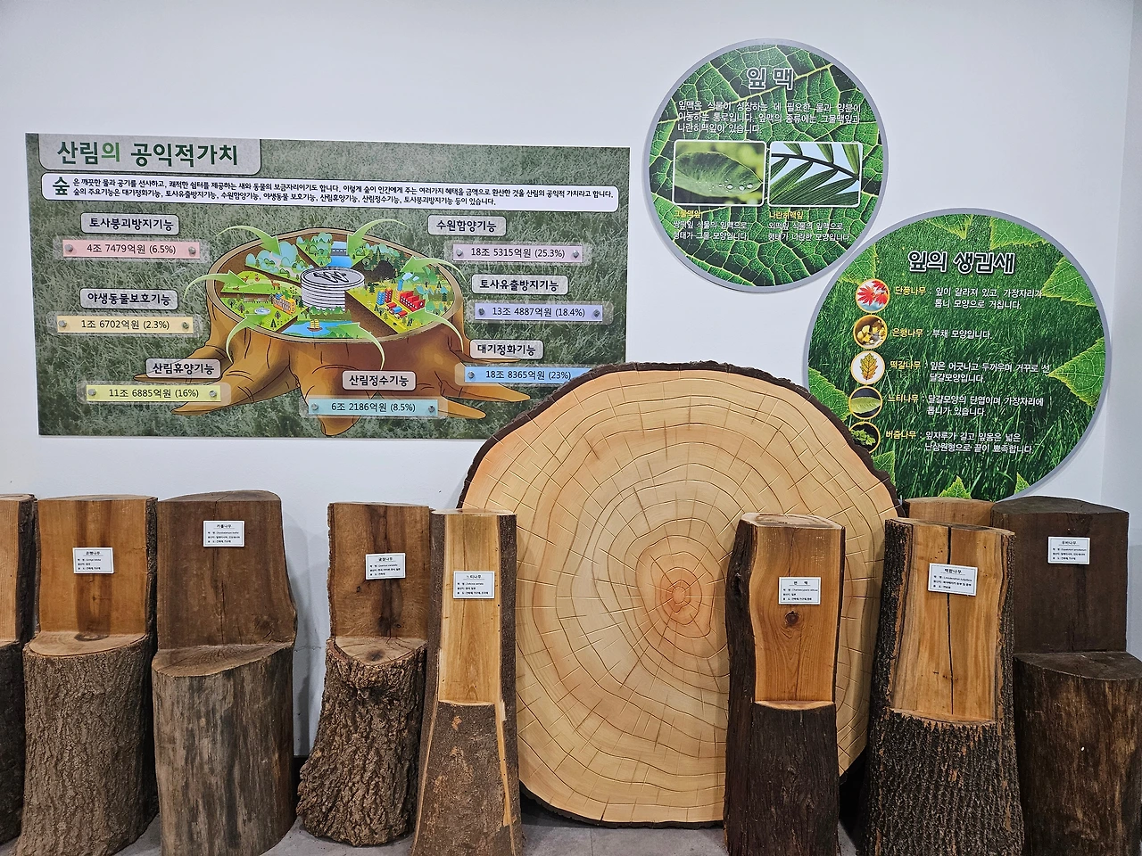 숲전시관의 출구에는 그저 자연에 대한 아름다운 모습만 기억하라는 듯이 간결하지만 푸른 수묵화와 나무의 단면이 종류별로 전시되어 있다.