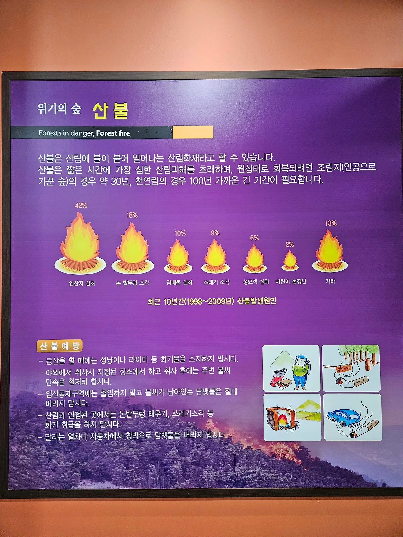건조한 계절이면 특히나 조심해야 하는 산불, 올 한 해는 한반도에 산불이 크게 일어 많은 지역에서 피해를 입고 지금도 그 상흔이 채 사그라들지 않았다. 모두 인재로 인해 발생한 산불이다. 성묘하러 갔다가 쓰레기 들고 가기 귀찮아 불을 피웠던 사람들, 무심코 버린 담배꽁초는 그들이 감당하지 못할 거대한 산불을 만들었다.