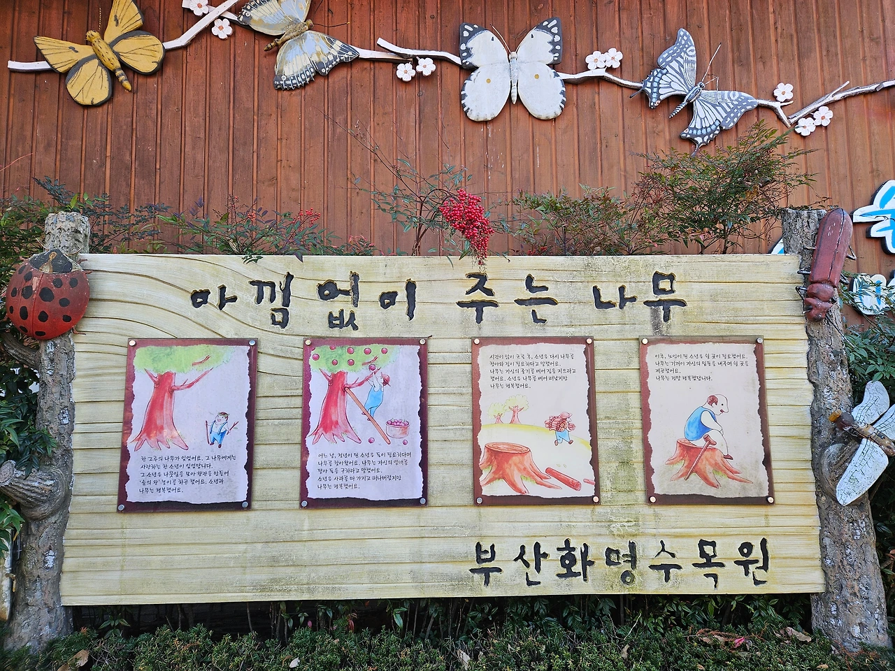 아낌없이 주는 나무가 화명수목원 숲전시실 입구를 당당히 차지하고 있다.