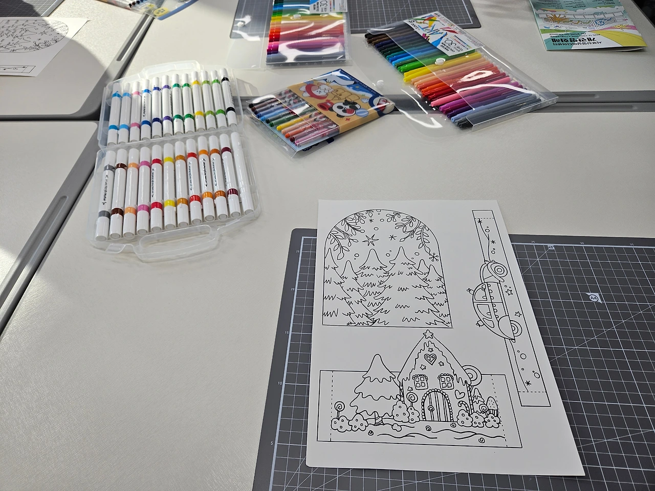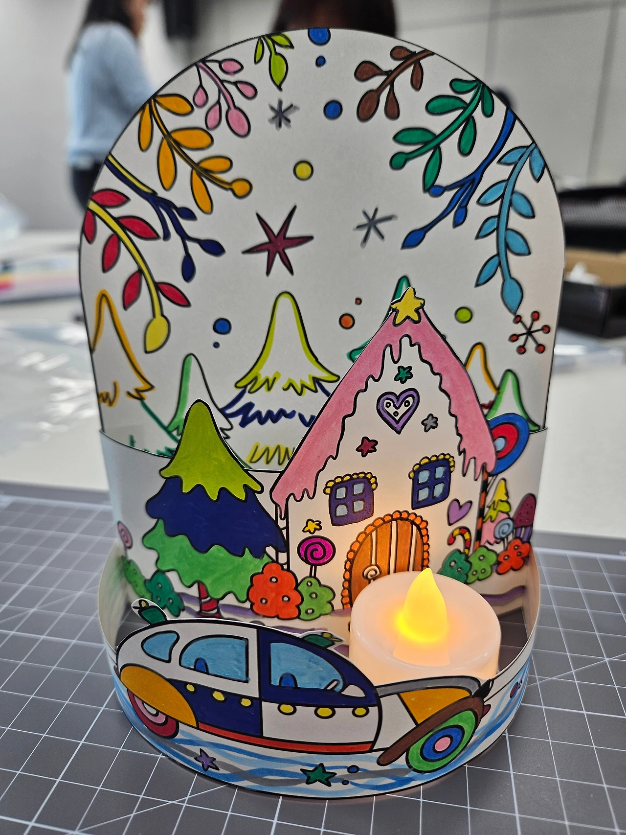 크리스마스 무드등 만들기이지만, 프린트된 종이에 색칠하는 것이 이번시간의 미션이다.
