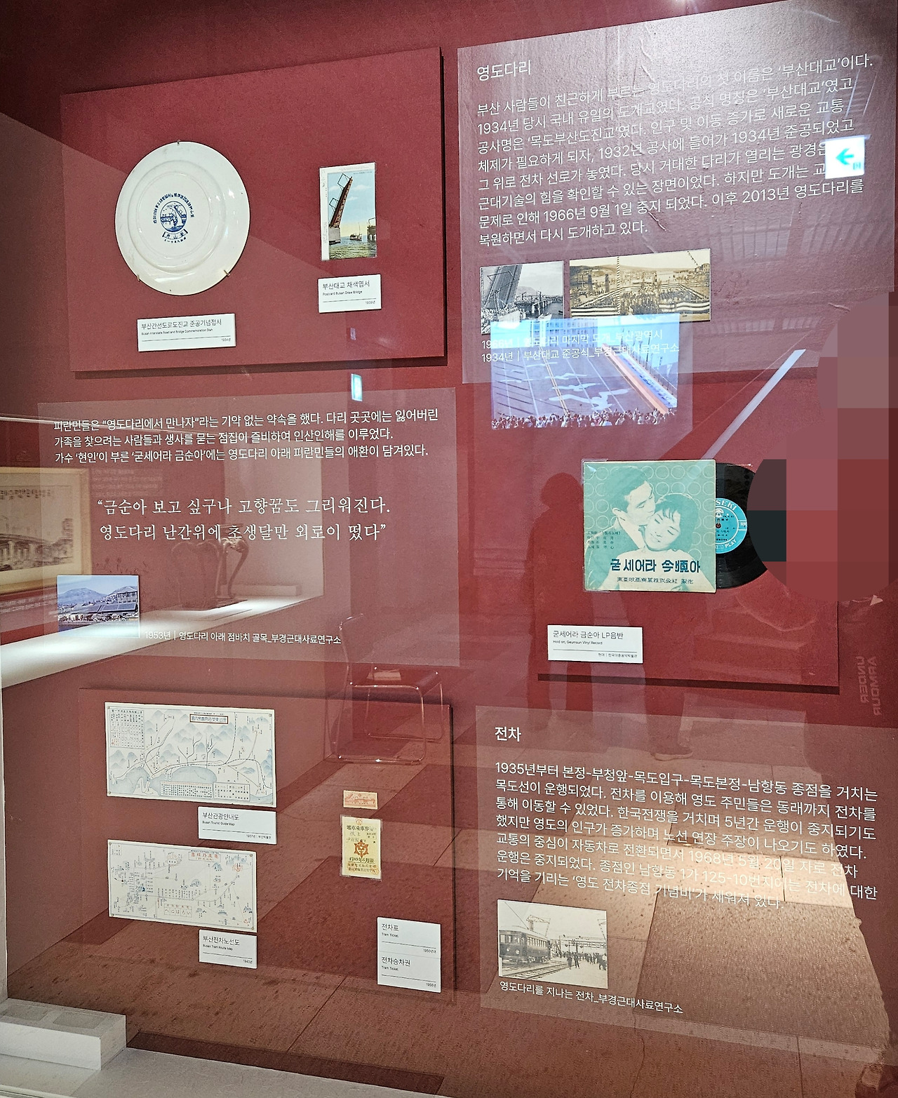 영도와 동래를 이어주는 중요한 교통수단이 전차였다. 하지만 산업발전으로 교통의 중심이 자동차로 변화하면서 1968년 5월 20일로 전차가 멈추게 되었다. 지금은 사진으로만 볼 수 있는 전차 지나가는 소리가 귓가를 맴돌 뿐이다. 지금 우리가 서있는 이 땅이 과거의 역사를 그대로 품고 있다는 사실이 발끝으로 전해진다.