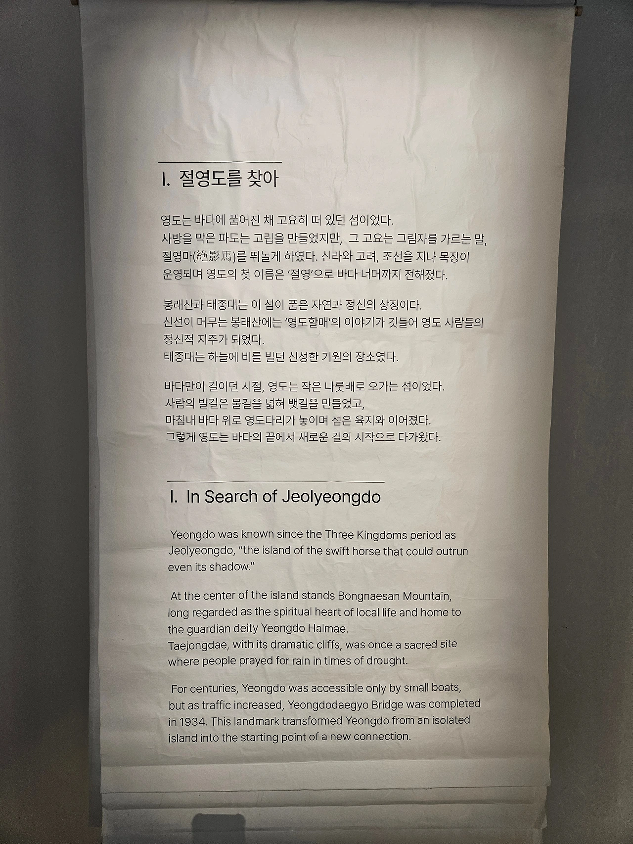 지침을 덜어낼 정도의 큰 깨달음을 얻은 곳이 바로 절영교였다. 영도의 이름이 이곳에서 왔구나. 얼마나 빠른 말이길래 그림자를 끊어낼 정도였을까. 혹은 화려한 언어구사, 뛰어난 필력으로 '절영(絶影)'이라는 단어를 기억의 흔적으로 남기게 되었을까.