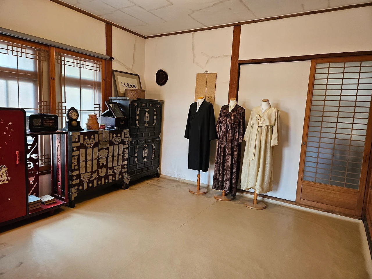 그 시절에 오고 갔던 사람들의 사진과 사용했을 법한 가구들이 퍽 예스럽다.