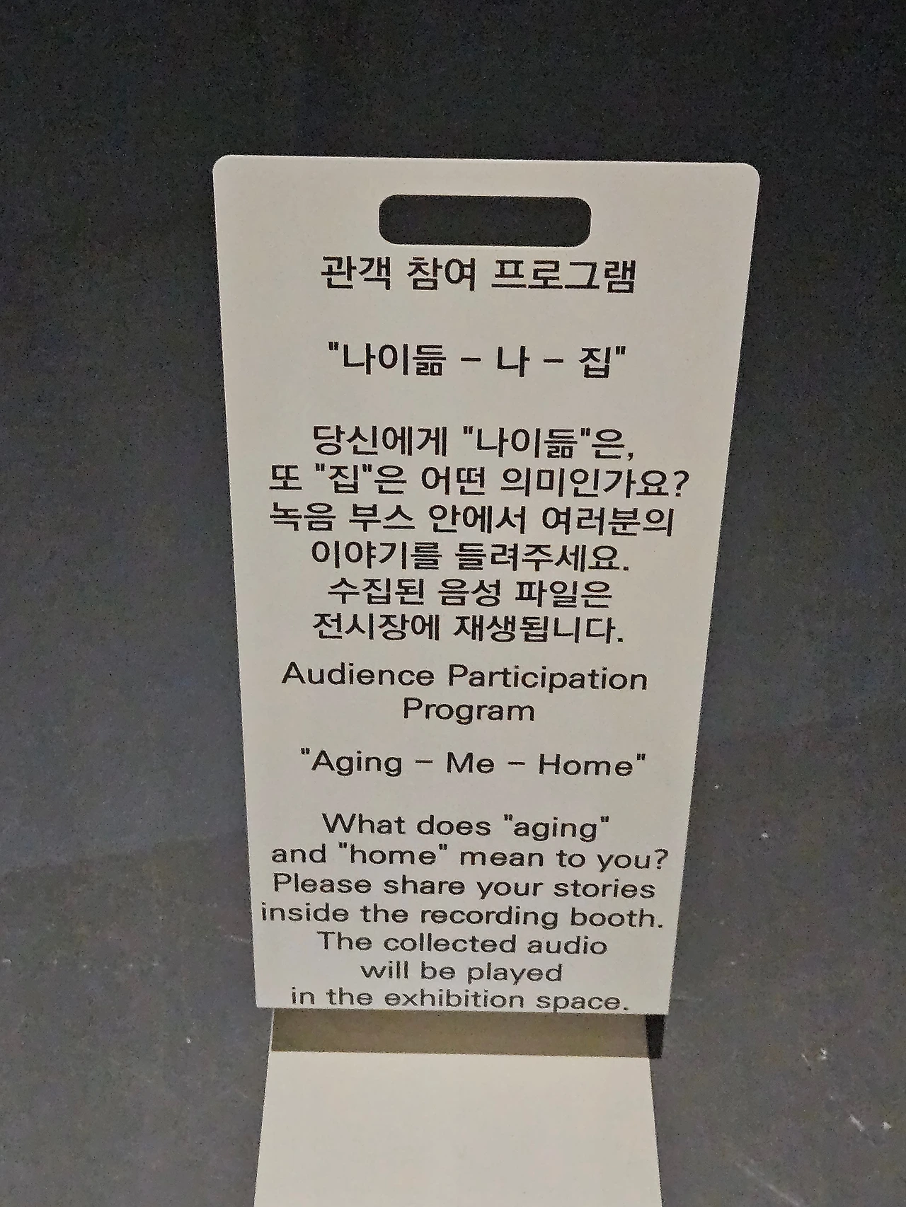 관객참여형 전시. 나이 듦과 누군가에 대한 이야기가 담겨있다.