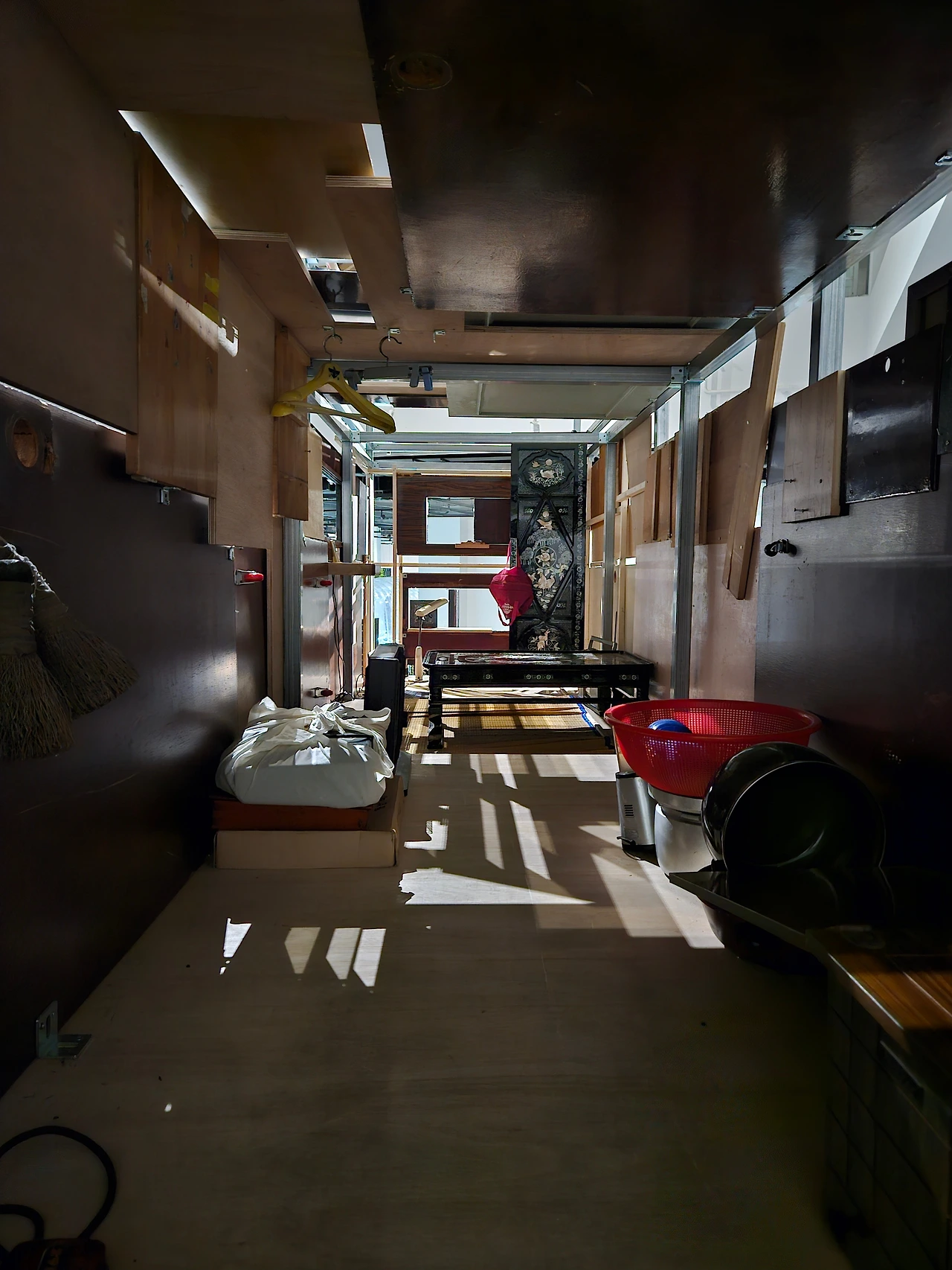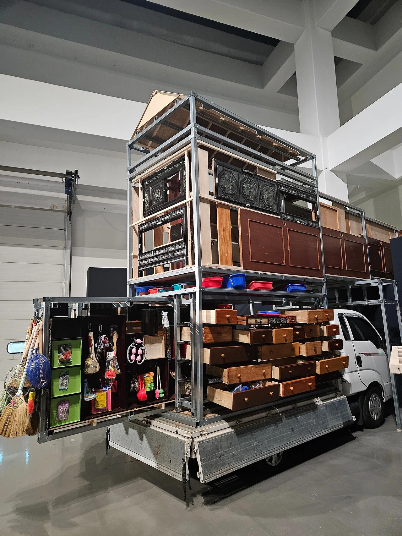 만물트럭의 지붕은 누군가의 집이다. 자개상에 앉아 라디오를 들으며 하루를 소화하는 누군가의 모습이 그려진다.