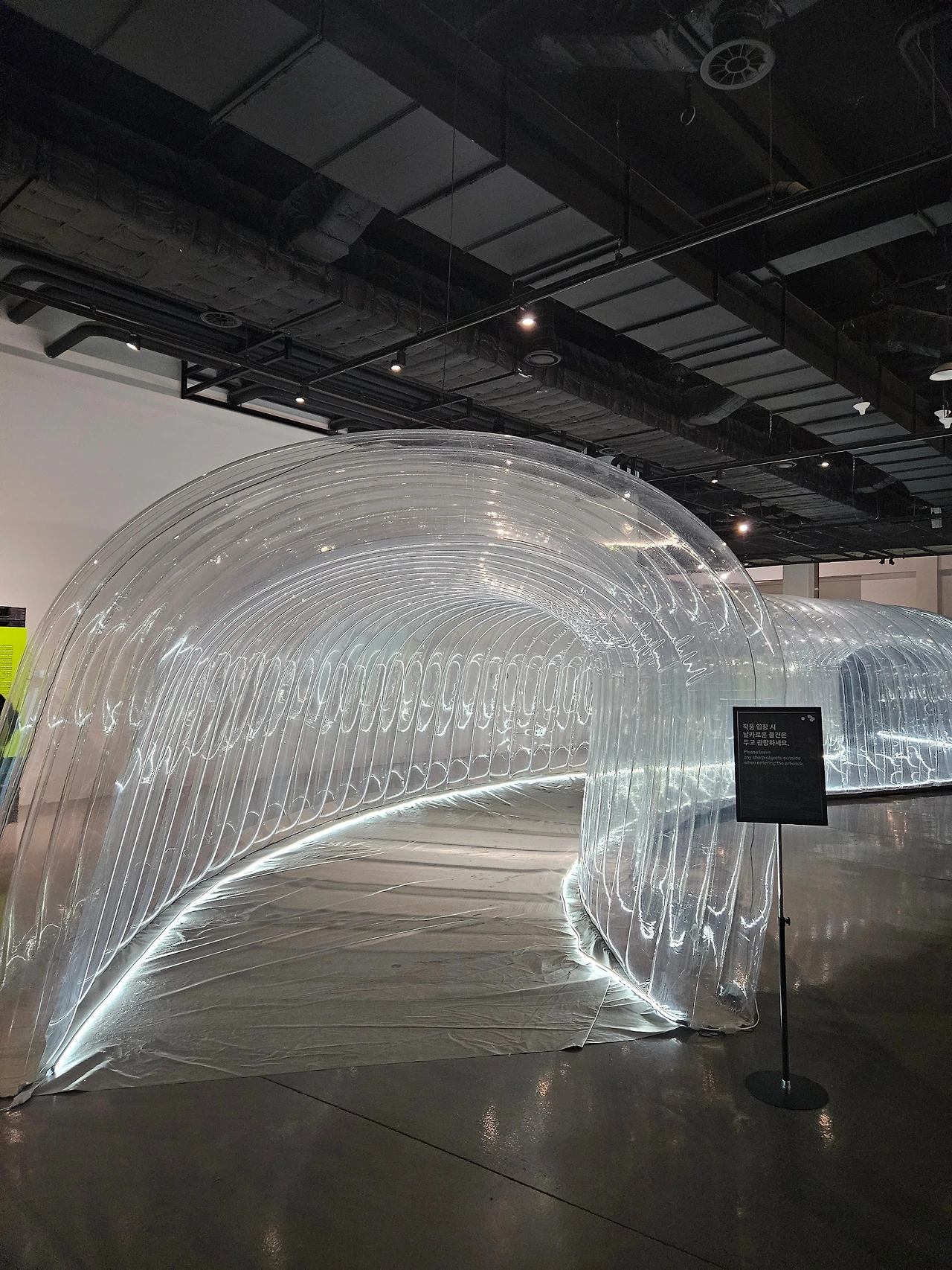 공간이 주는 오묘한 매력에 흡수된다. 공기로 채워진 비닐벽으로 나를 지켜낼 수 있을까.