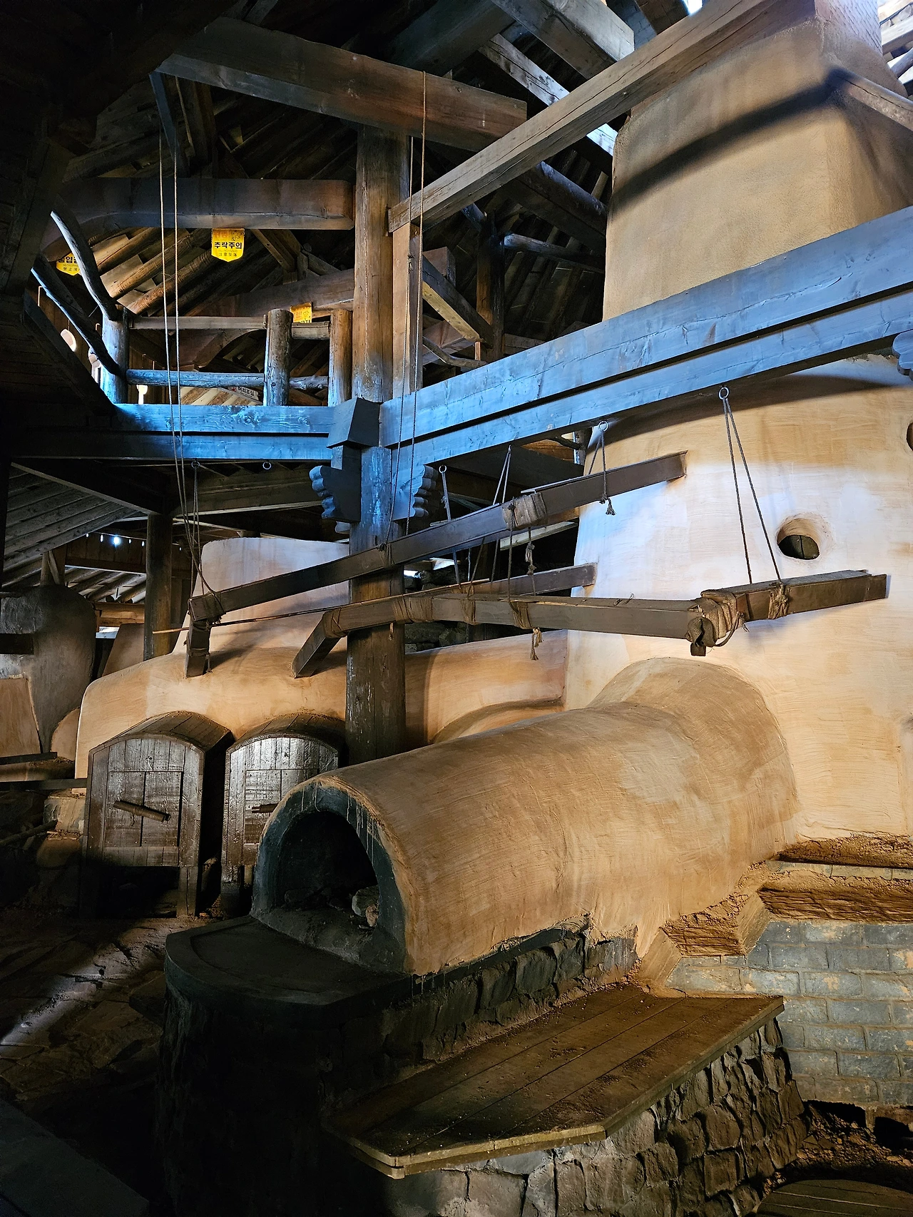 야철장 앞에 만들어진 입구가 뚫린 나무집은 가마를 위한 땔감을 위한 공간.