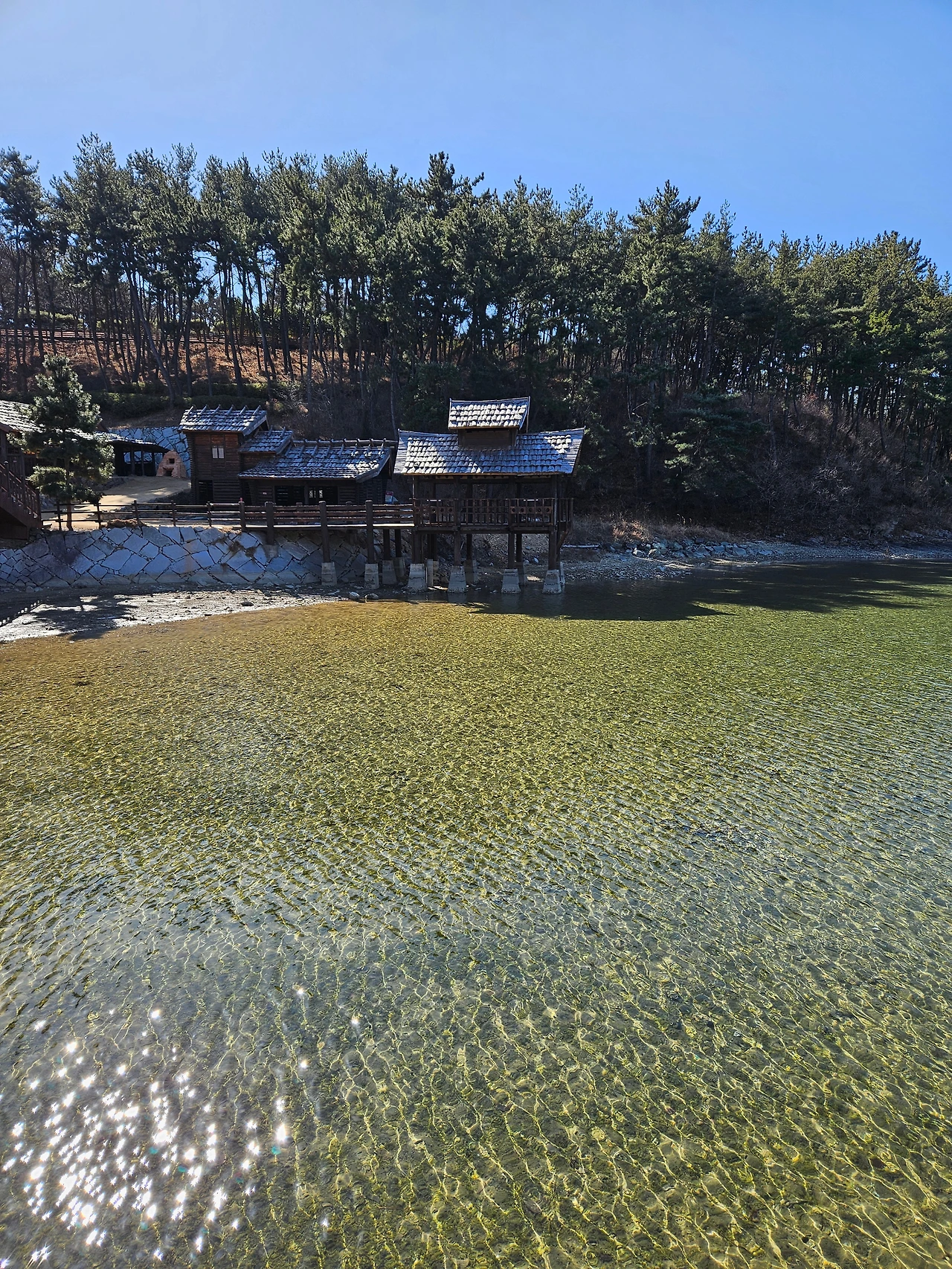 바다처럼 만들어졌지만, 간만의 차이인지 바다와 이어진 물길은 끊겨있고 인공 호수처럼 보일 뿐이다.