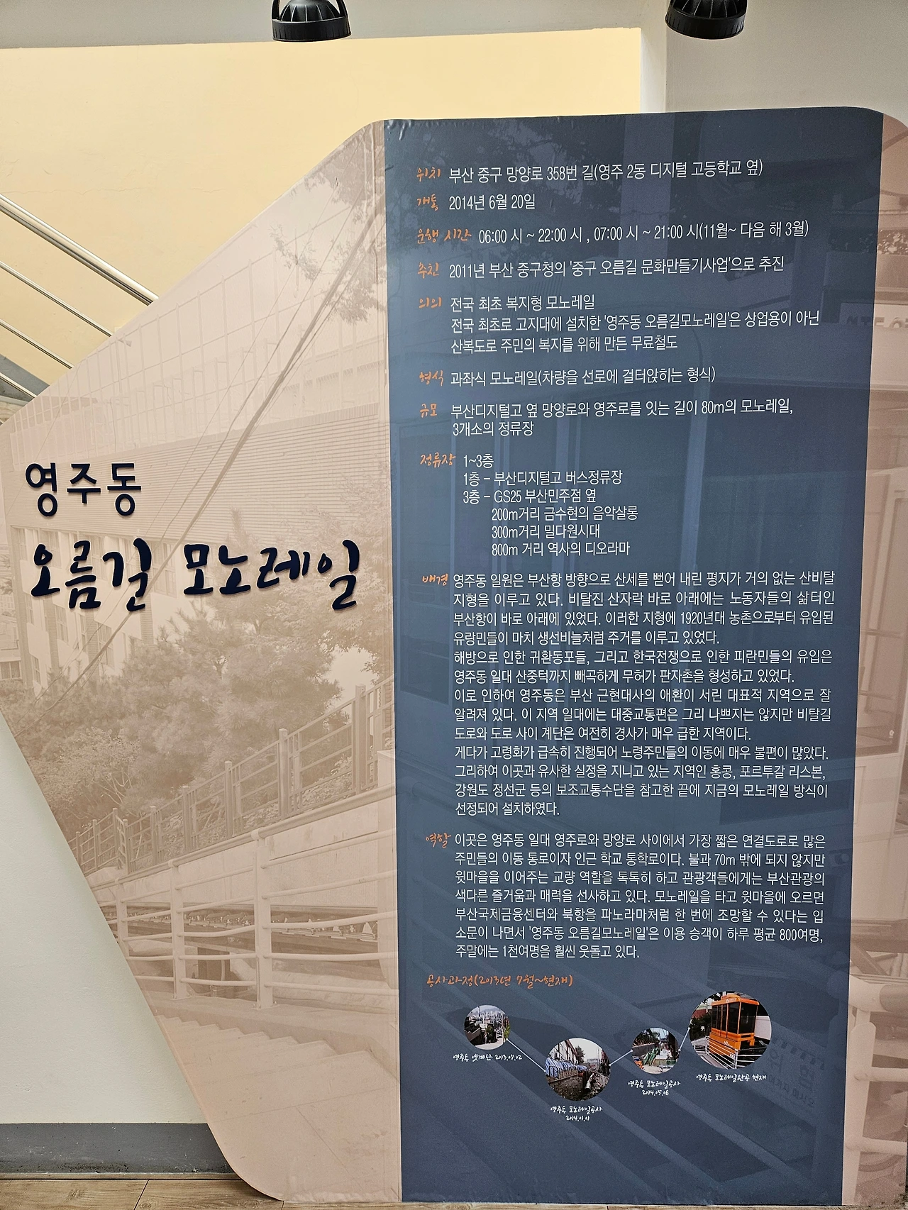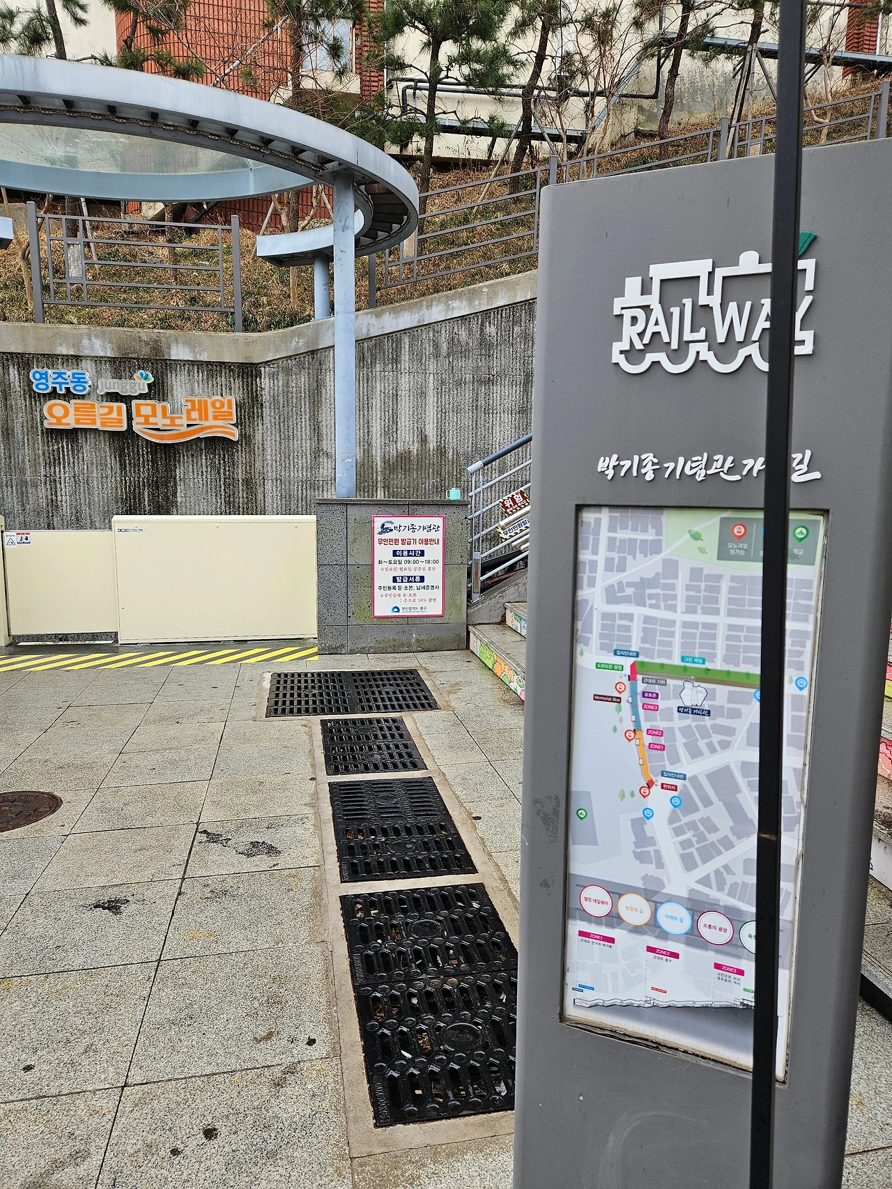 부산디지털고 버스 정류장에 하차하면 영주동 오름길 모노레일을 만날 수 있다.