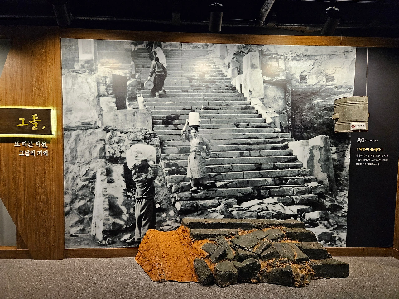만남의 장소로 쉽게 정했던 40 계단. 보고 싶으면 찾아갔던 그곳. 물을 기르기 위해 몇 번이나 오르내렸던 그 계단. 선박에서 나온 나무판자 등을 가져와 얼기설기 지은 거주환경은 화재가 나기 일쑤였다.