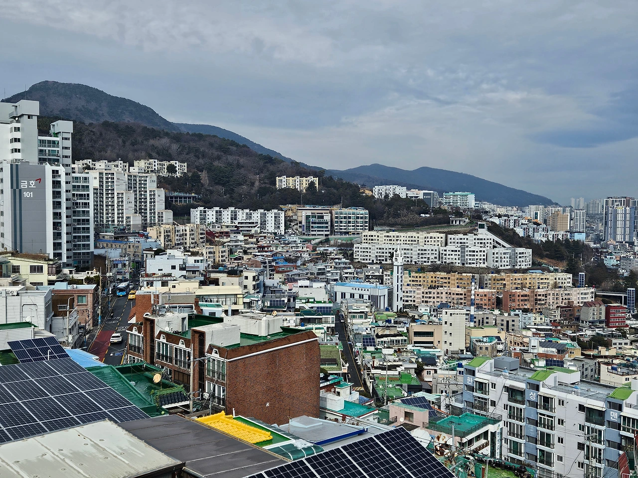 산을 깎아 만든 부산만이 가지고 있는 형태, 그 속엔 시련과 아픔이 가득할지라도 이렇게 멀리서 바라보면 그저 아름다울 뿐이다.