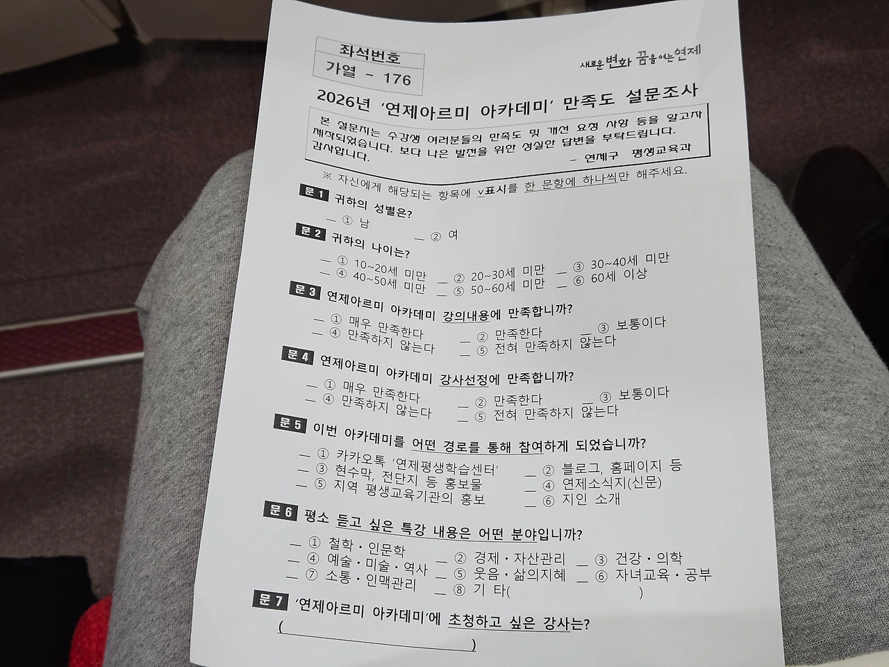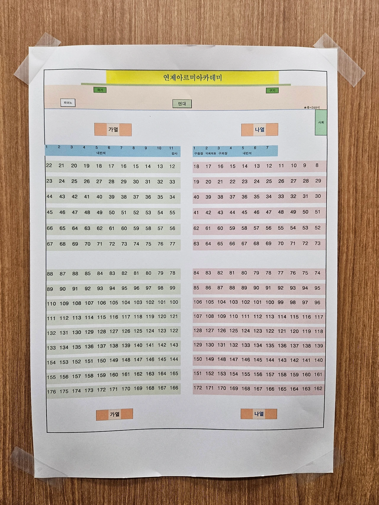 다행히 문을 열어주셨고, 정해진 나의 자리는 맨 끝자리.